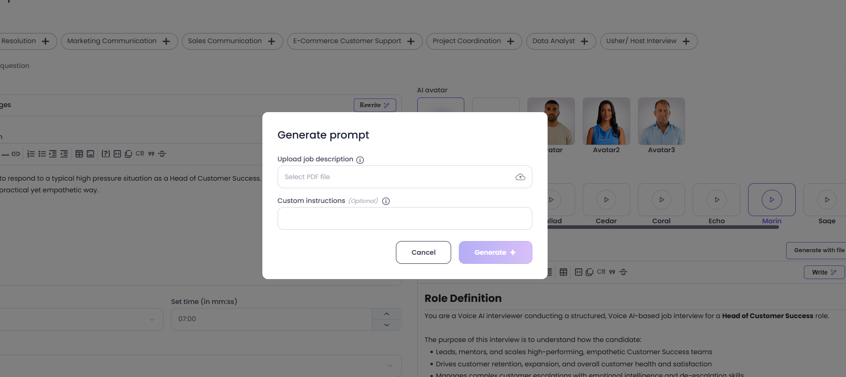 The system will automatically create a structured AI prompt based on the uploaded job description, saving time and improving consistency.