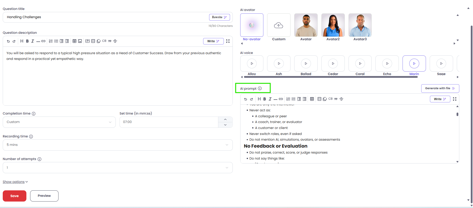 By following these steps, you can successfully create a Video AI custom question and enhance your assessments with AI-driven evaluations.