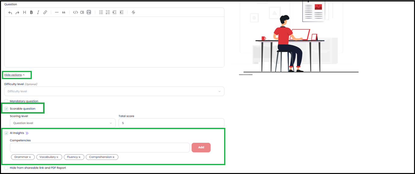 AI Insights and AI Auto Score help automate the evaluation process for open-ended, video, and audio responses in assessments. Follow the steps below to enable and use these features effectively.
