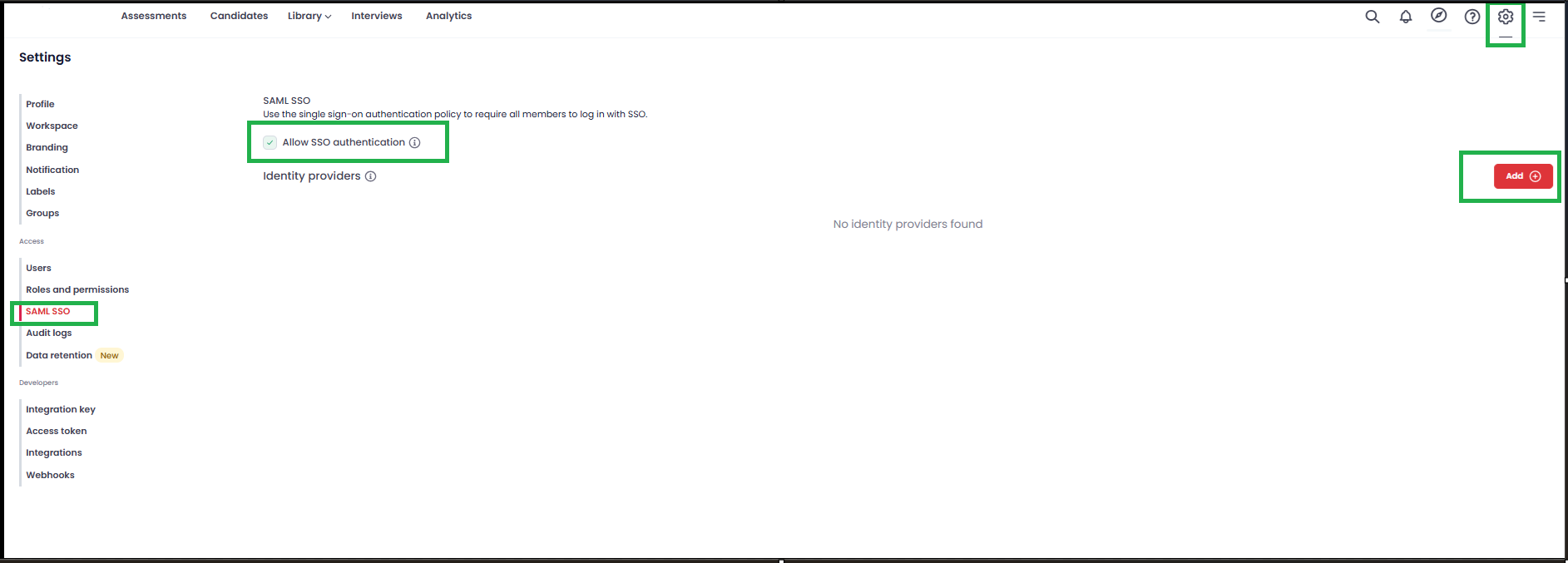 The Single Sign-On (SSO) SAML feature is now available for Testlify customers, providing a seamless and secure way to log in to the platform. This feature allows users to authenticate using their identity provider, making the login process more streamlined and efficient. This article will guide you through setting up and using the SSO SAML login feature for your Testlify workspace.