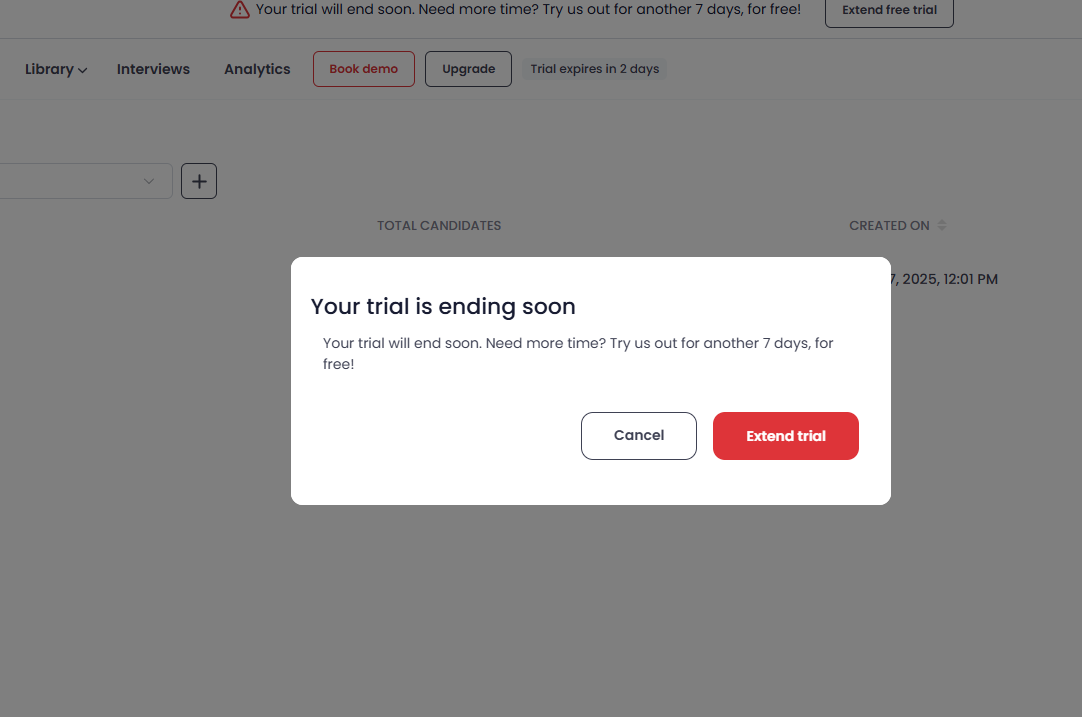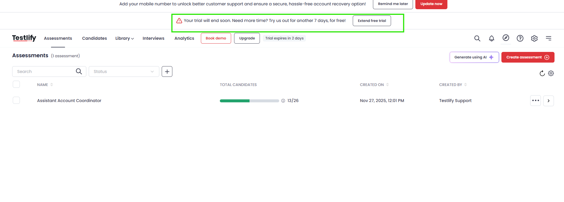 To support you better, Testlify offers a 7-day free trial, and now, as part of the latest update, you can extend your trial for an additional 7 days, absolutely free.