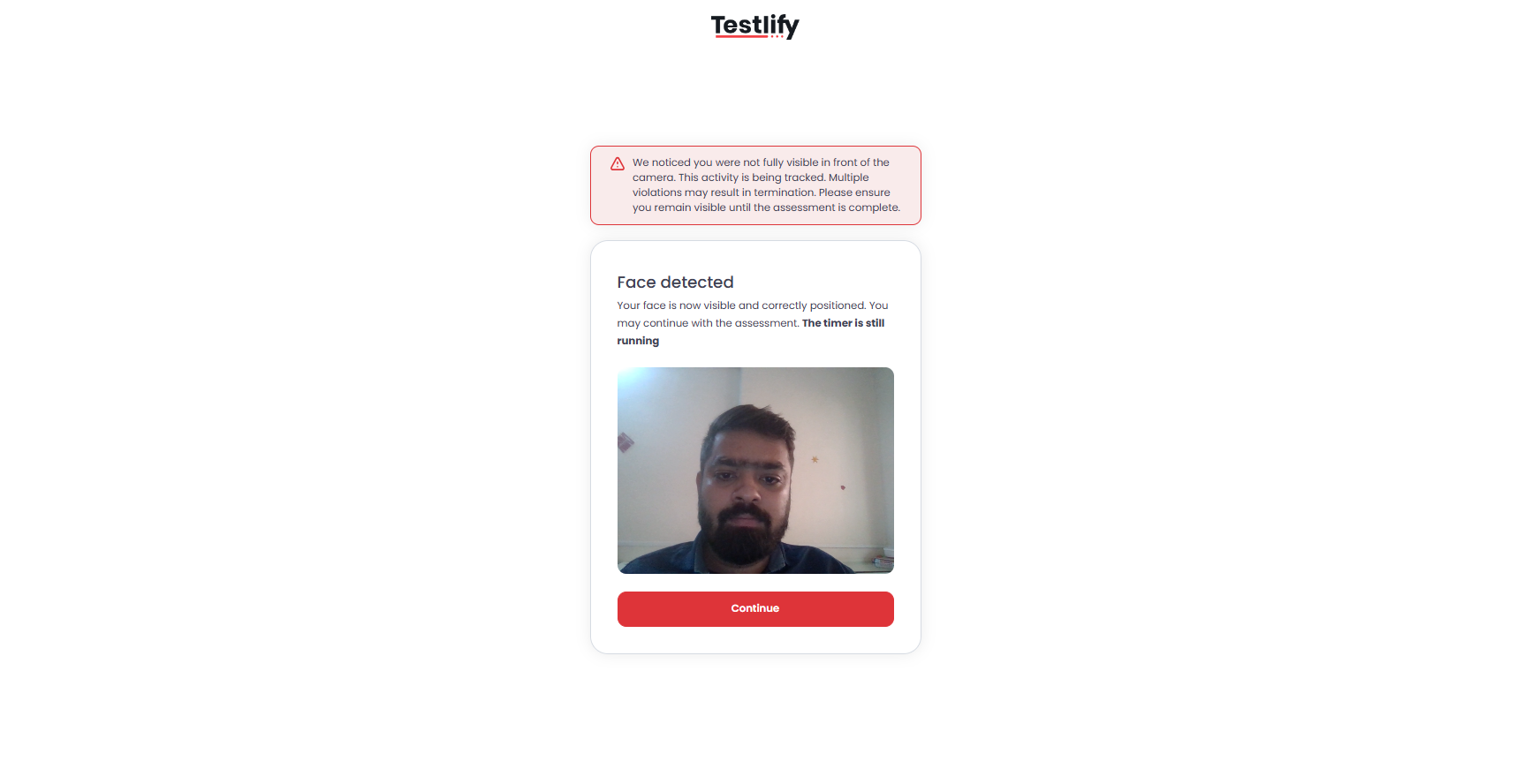 Face Detection: The tool actively monitors for the presence of a candidate's face, detecting irregularities such as: