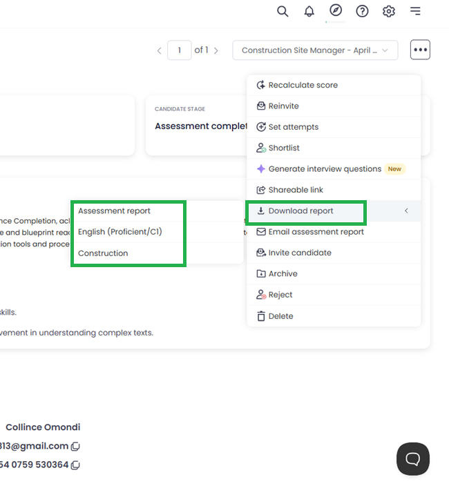 Testlify provides a straightforward way to download detailed reports of candidates who have completed assessments. These reports are essential for understanding the strengths and weaknesses of candidates and making informed hiring decisions.