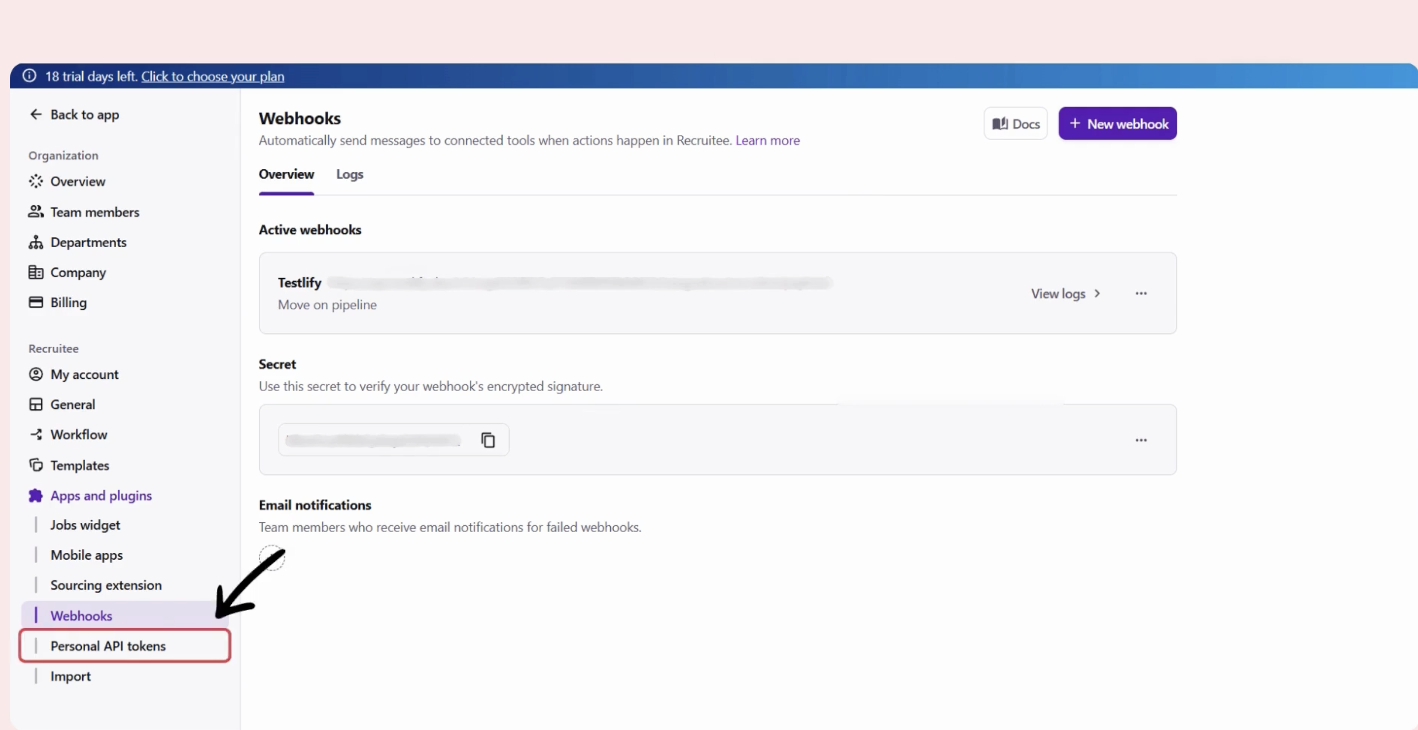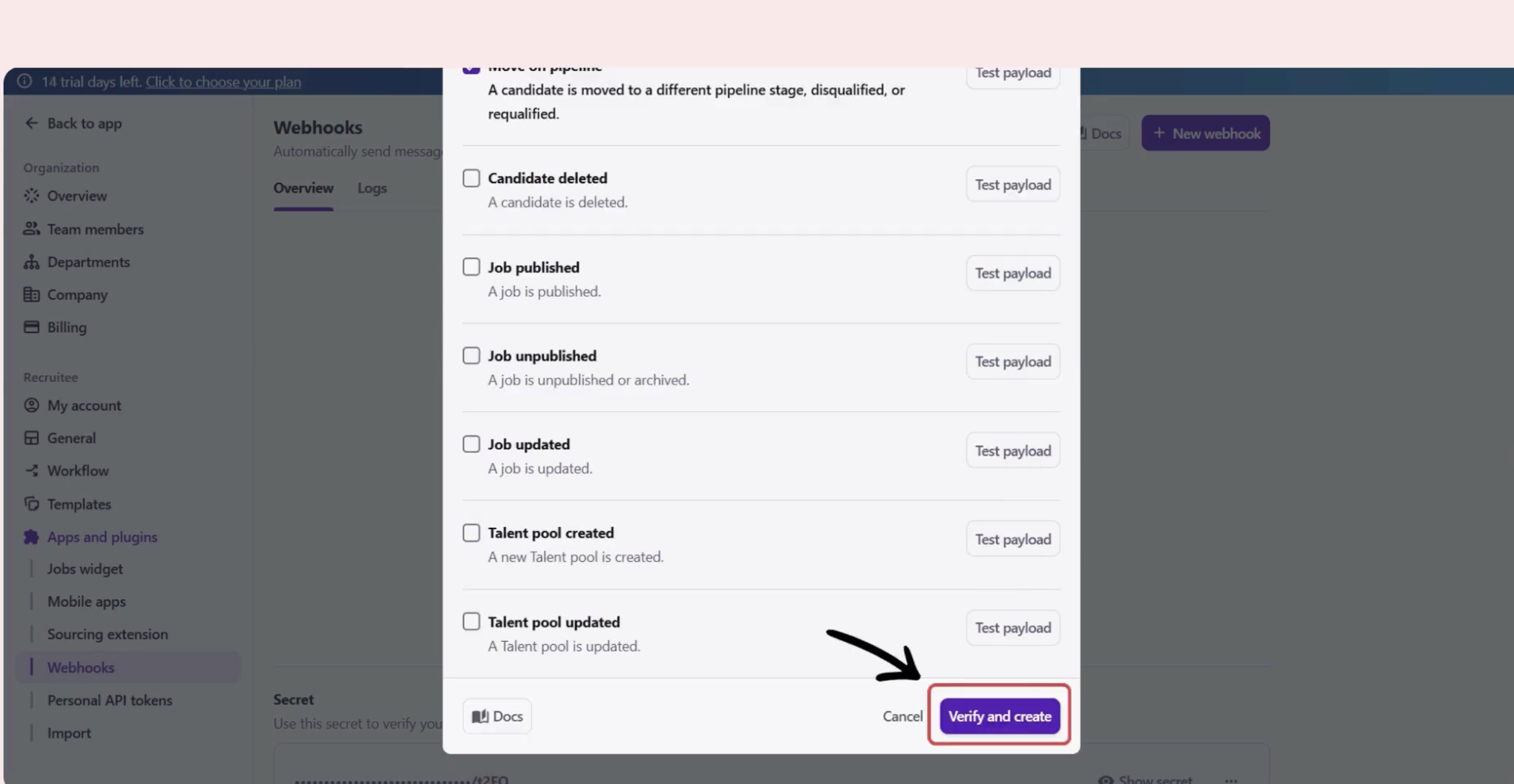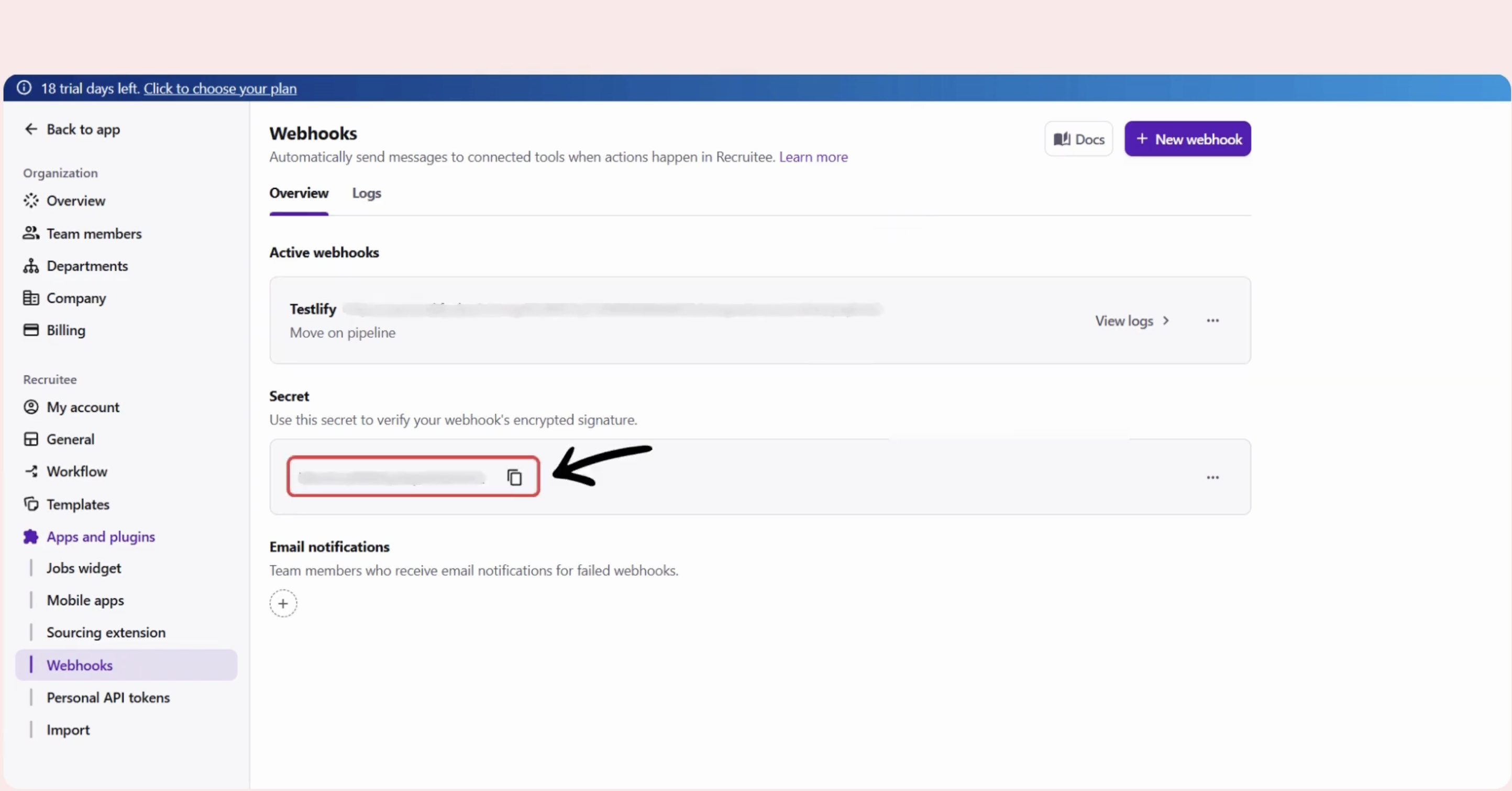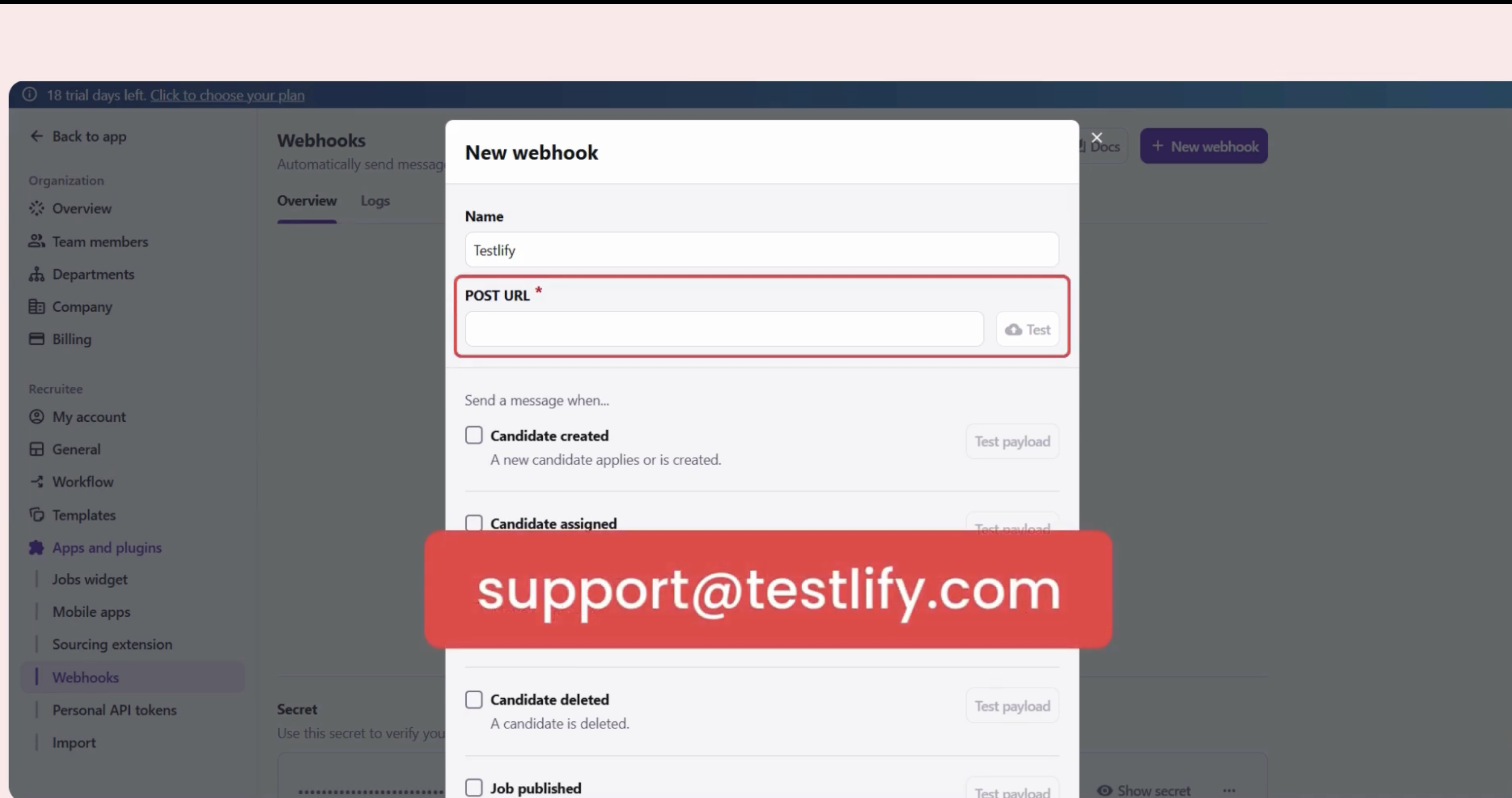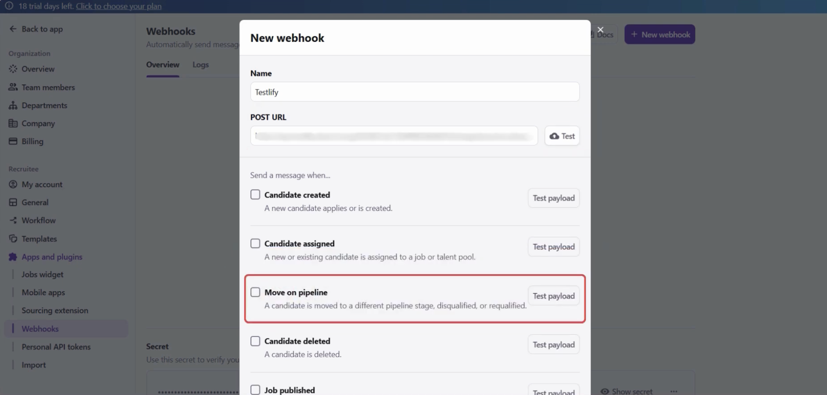 Step 3: Create Webhook in Recruitee