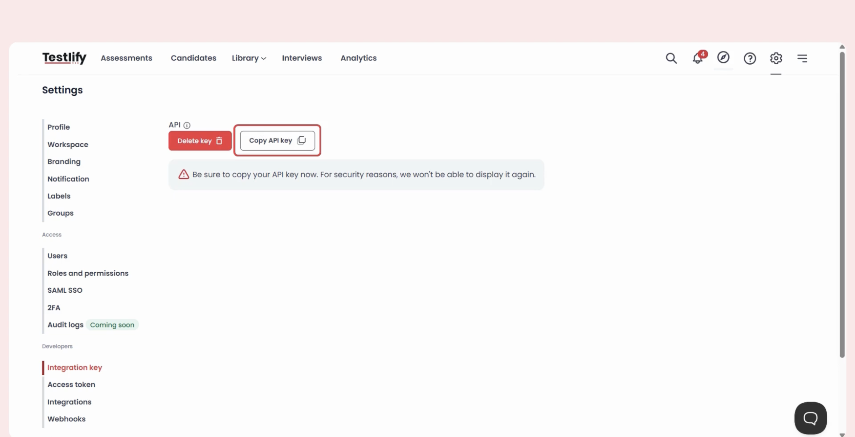 Step 7: Generate Integration Key (Testlify)