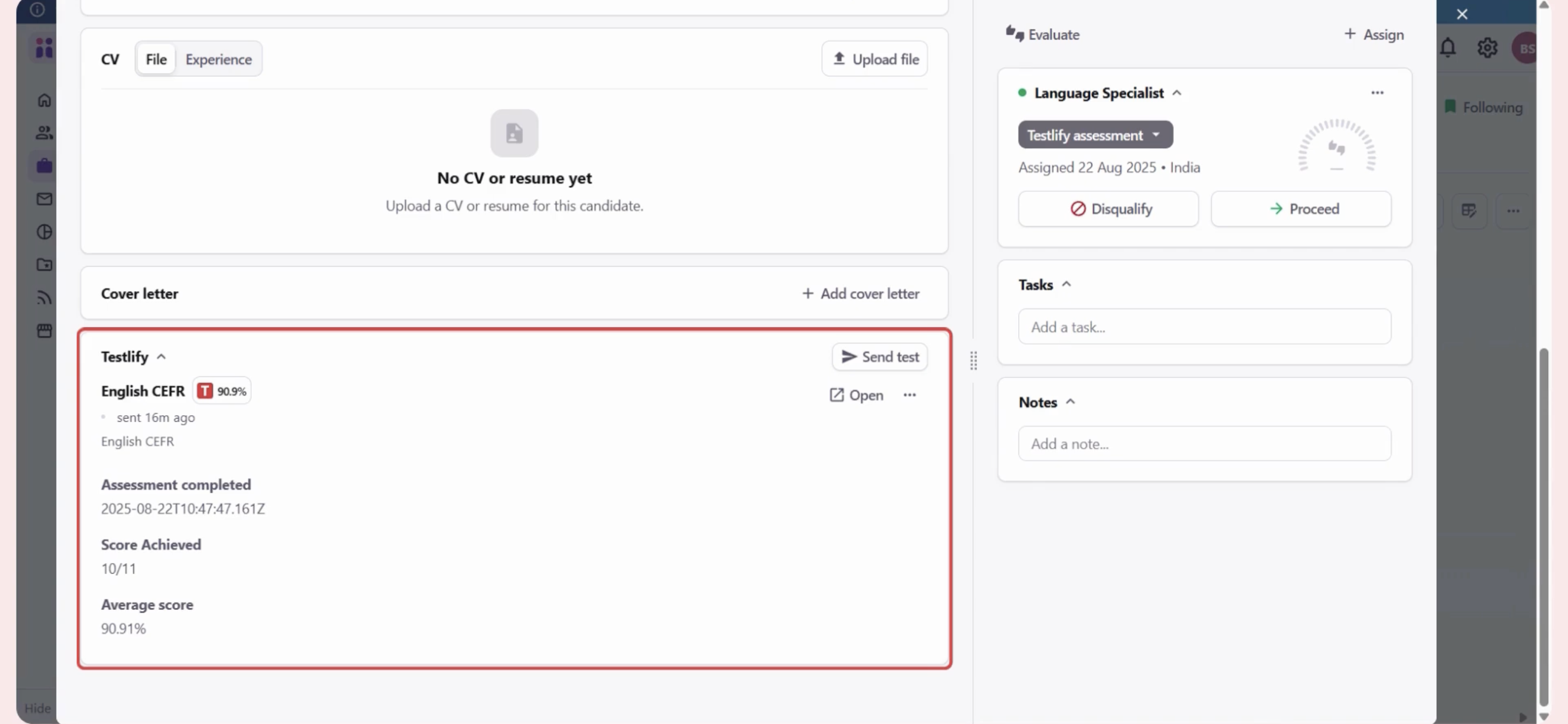 - Testlify automatically sends the assessment invite