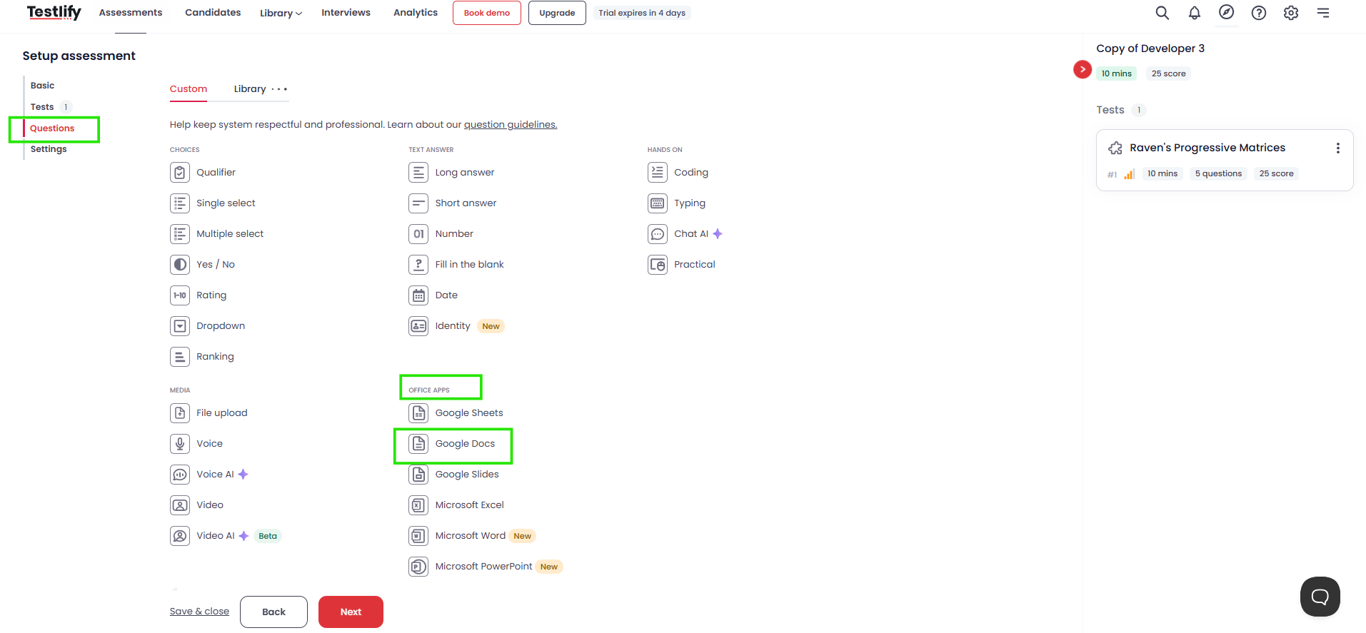 Welcome to Testlify! In this guide, we'll explore how to integrate Google Docs into your assessments for a seamless and interactive experience.