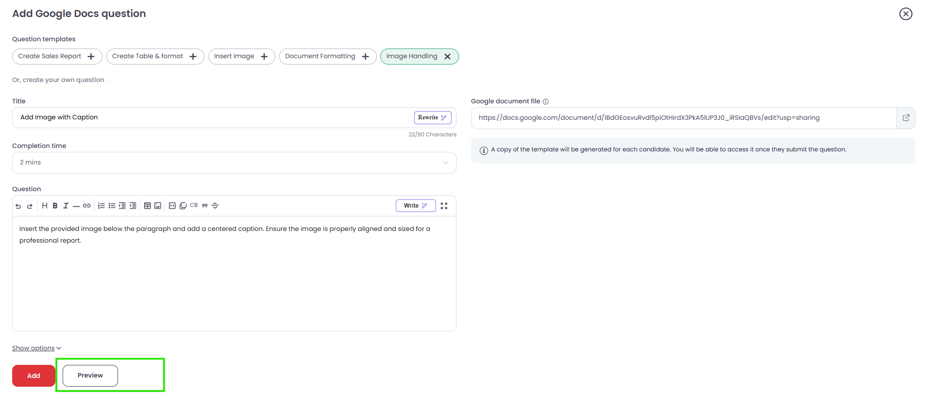 You can also click on 'Preview' to see how the question would look to the candidate.