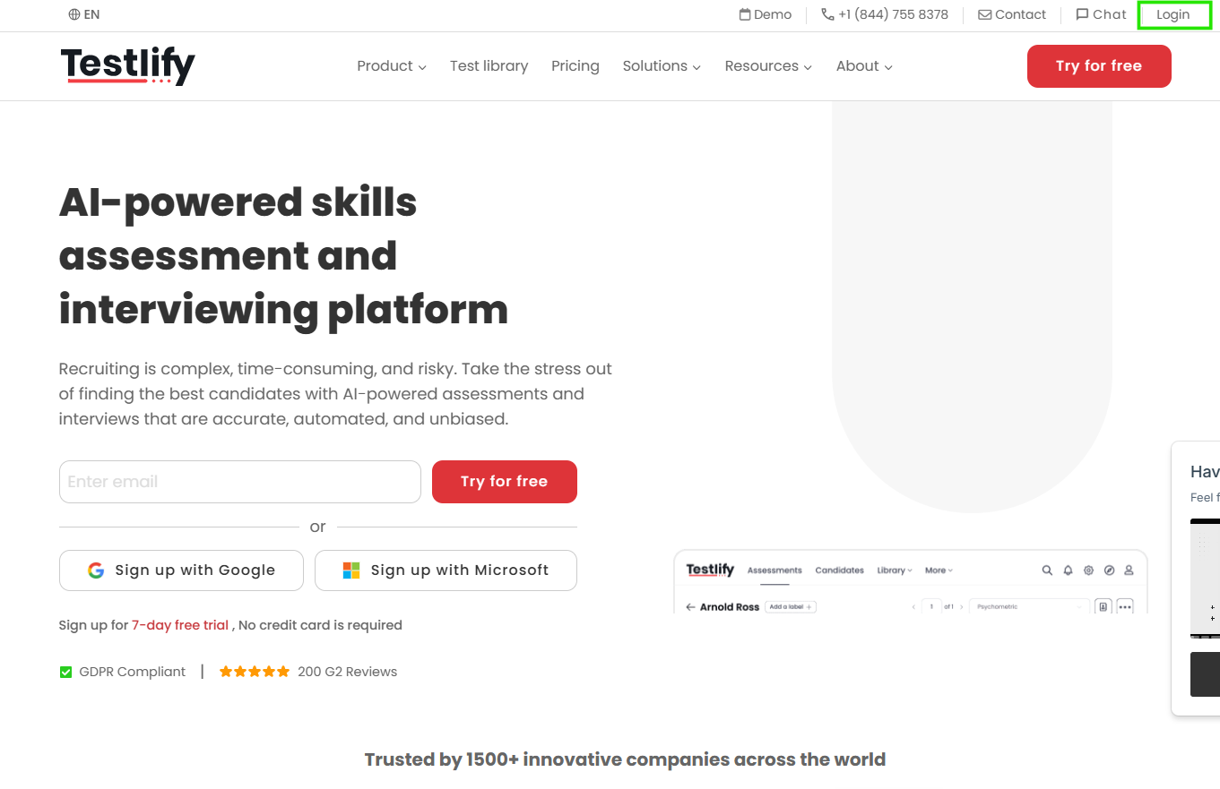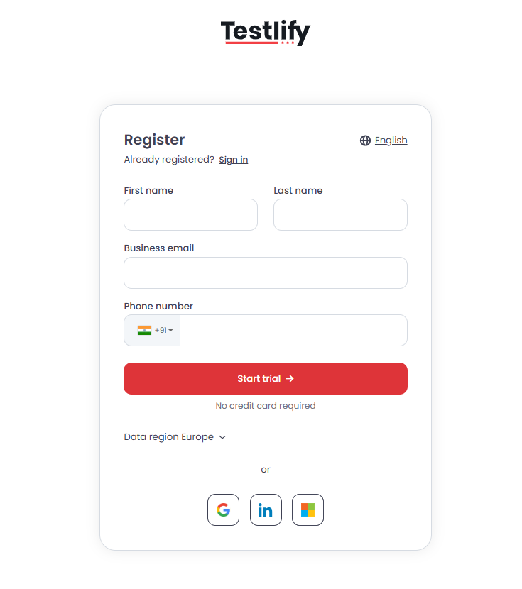 Go to https://app.testlify.com and click Try for free.