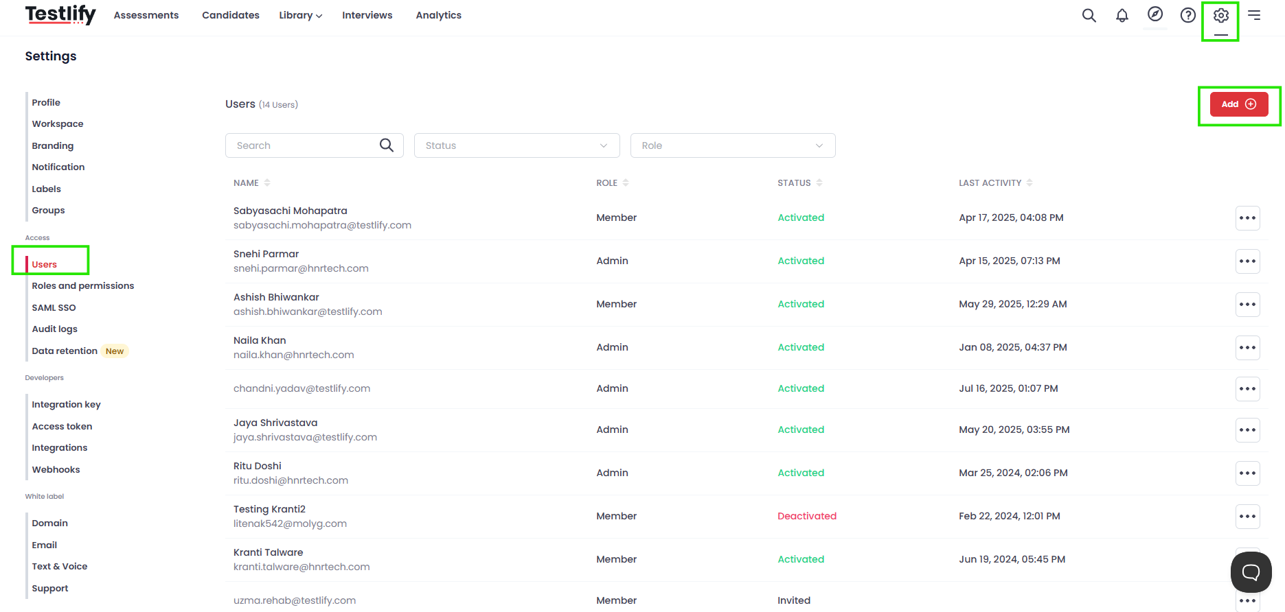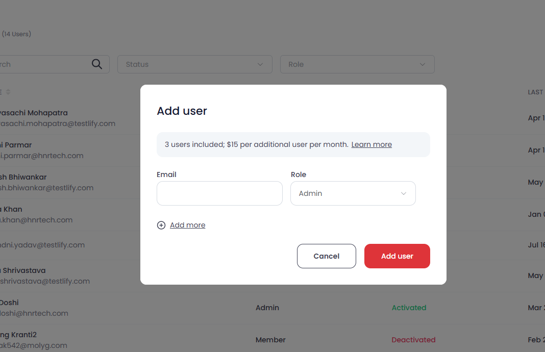 Learn more: How to add users in your Testlify workspace →