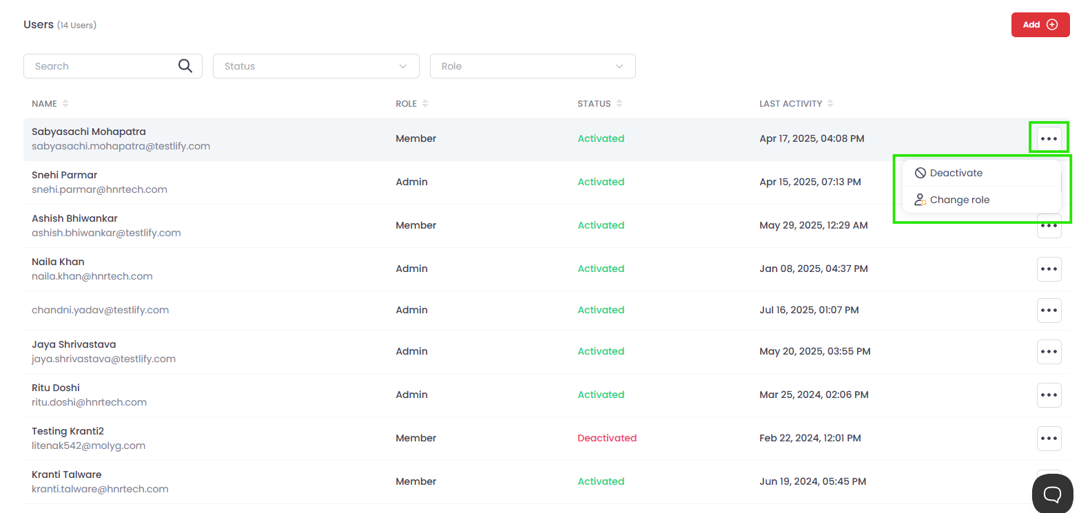 - Choose Change role or Deactivate.