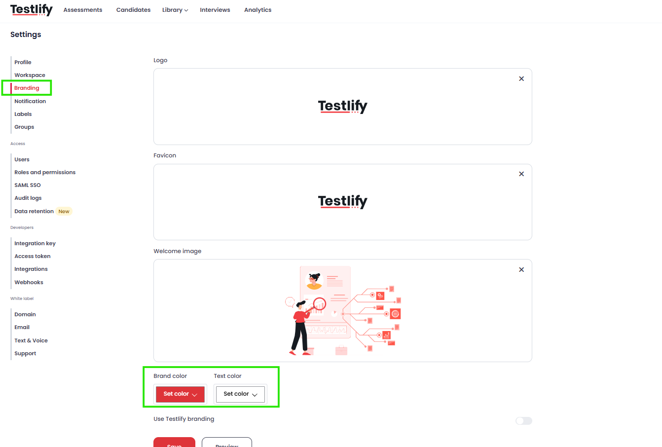 3. Customizing your brand on Testlify