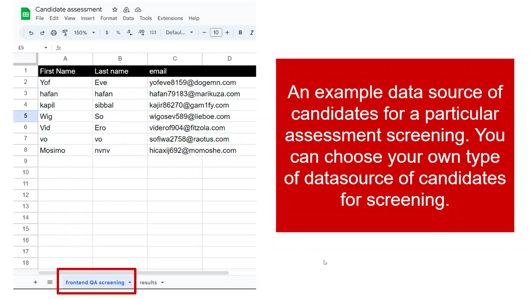 Here's an illustrative candidate data source for a specific assessment screening. You have the flexibility to select your preferred candidate data source for the screening process.