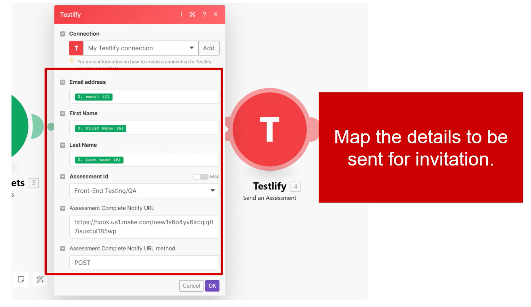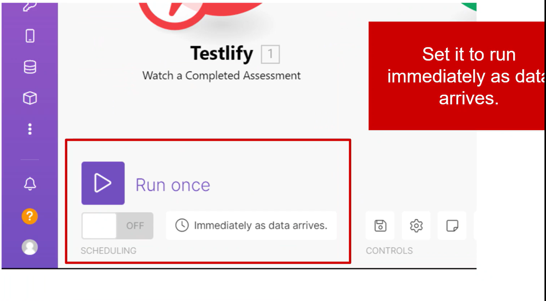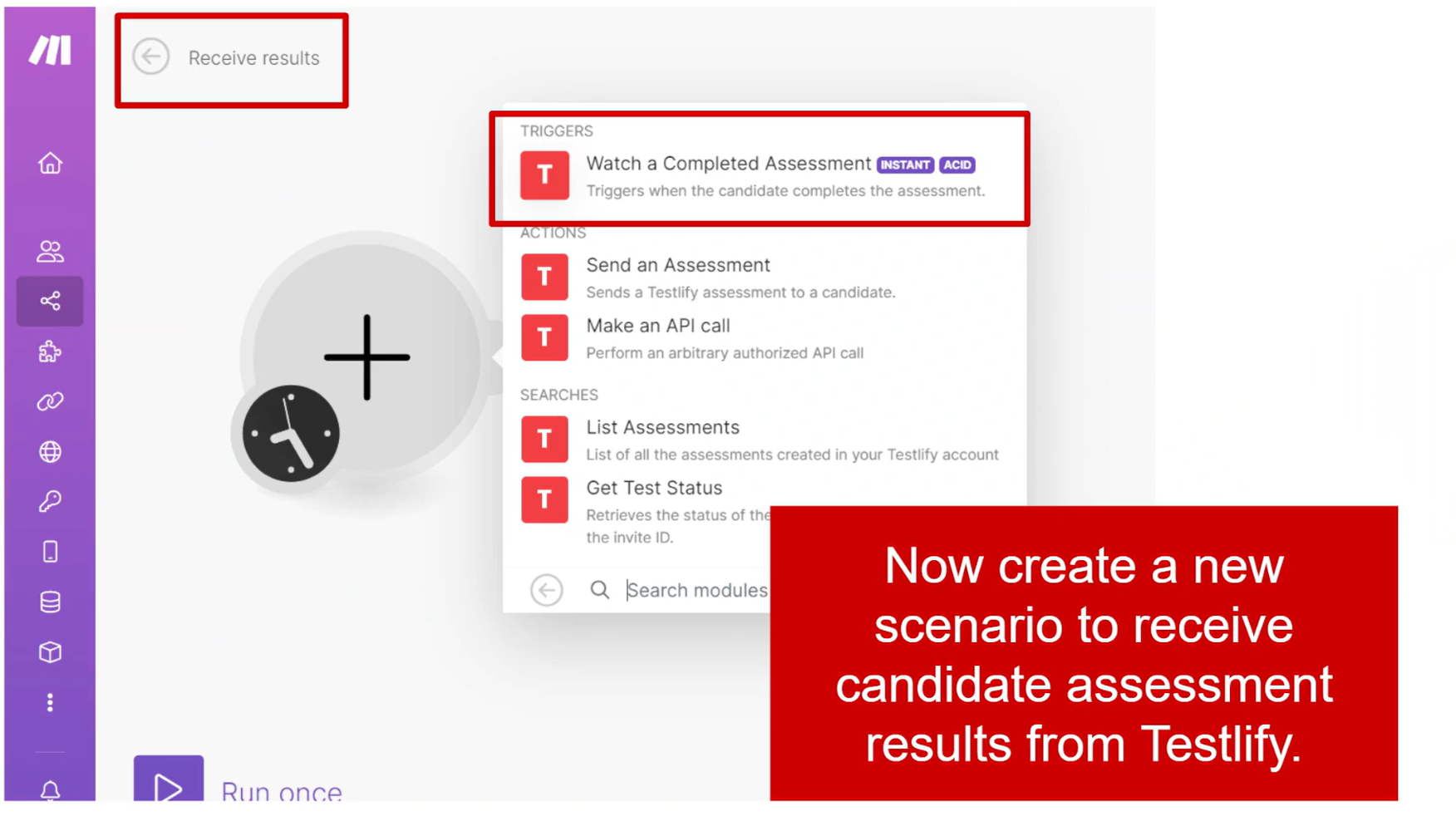 - Now create a new scenario for receiving candidate assessment results from Testlify.