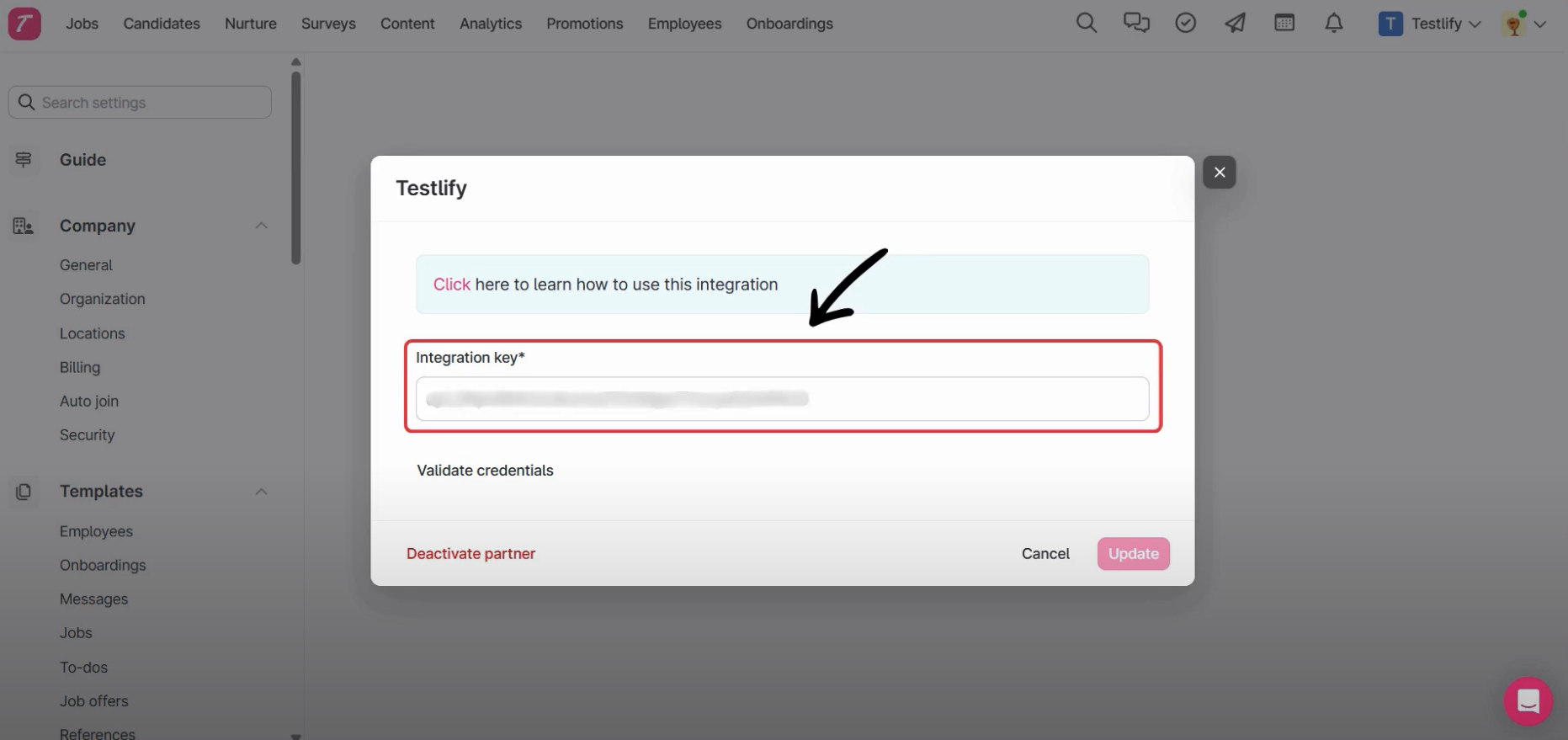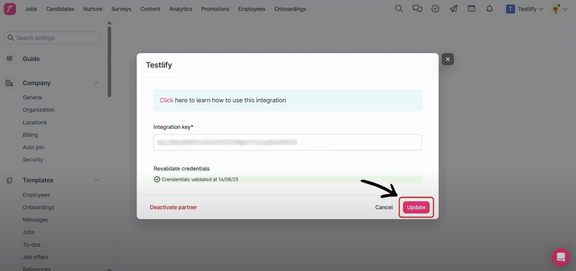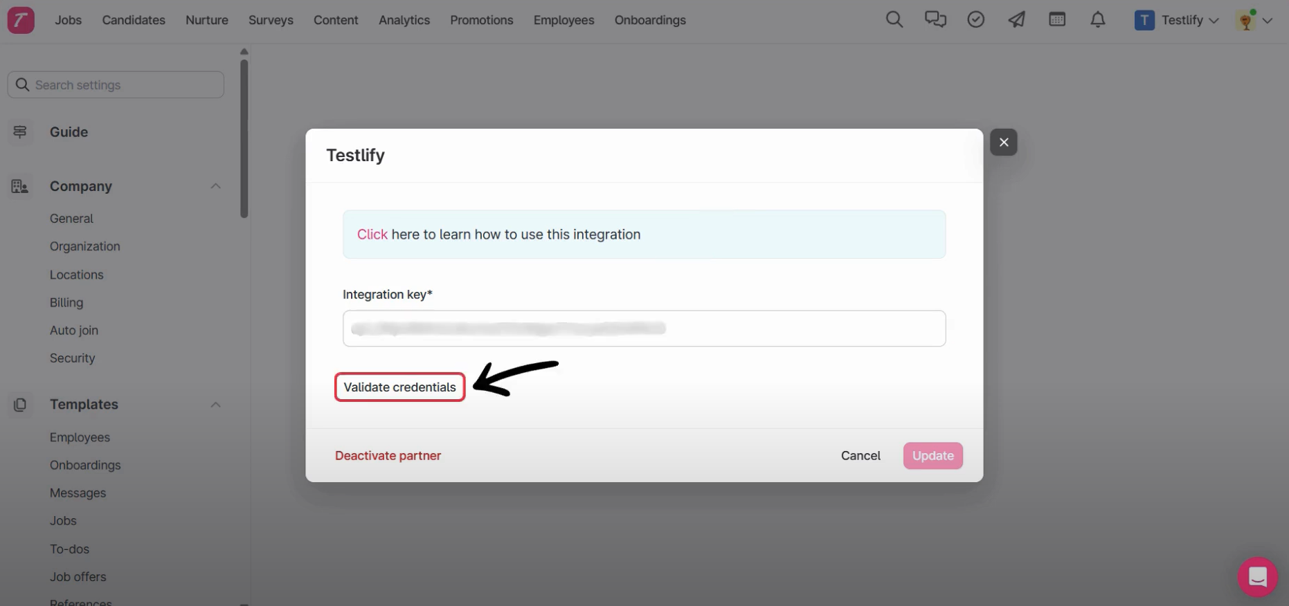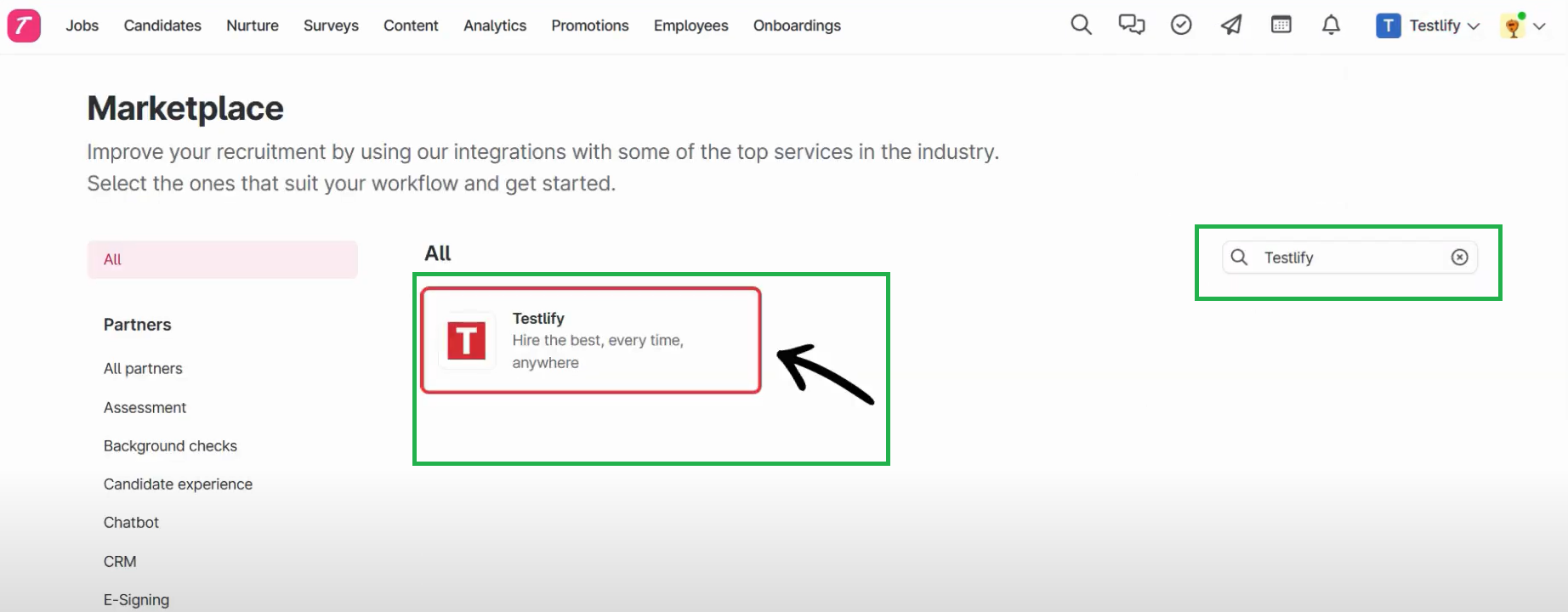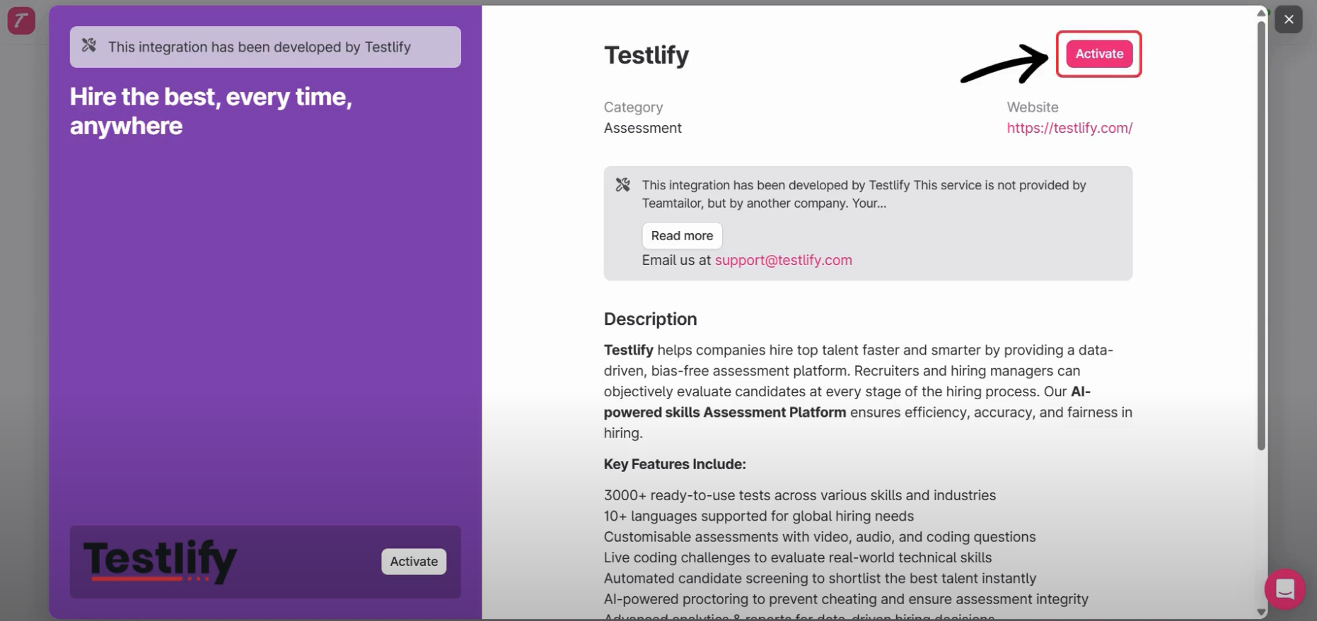 Step 1: Start Testlify Integration on Teamtailor