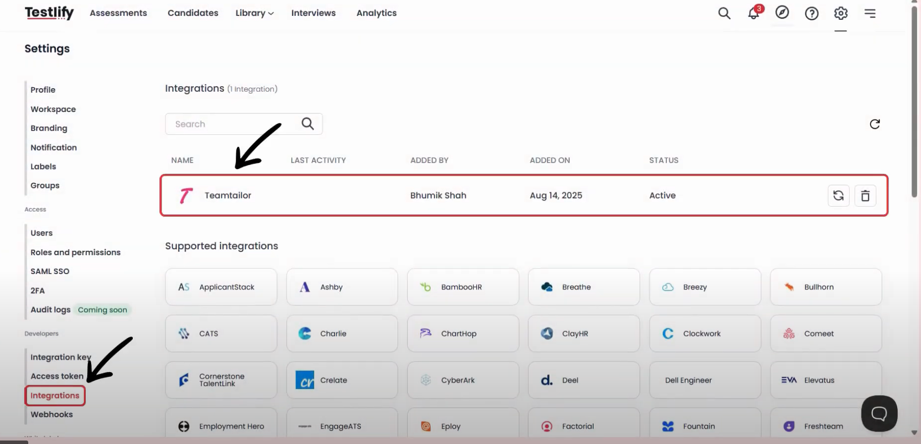 How to Integrate Testlify with Teamtailor