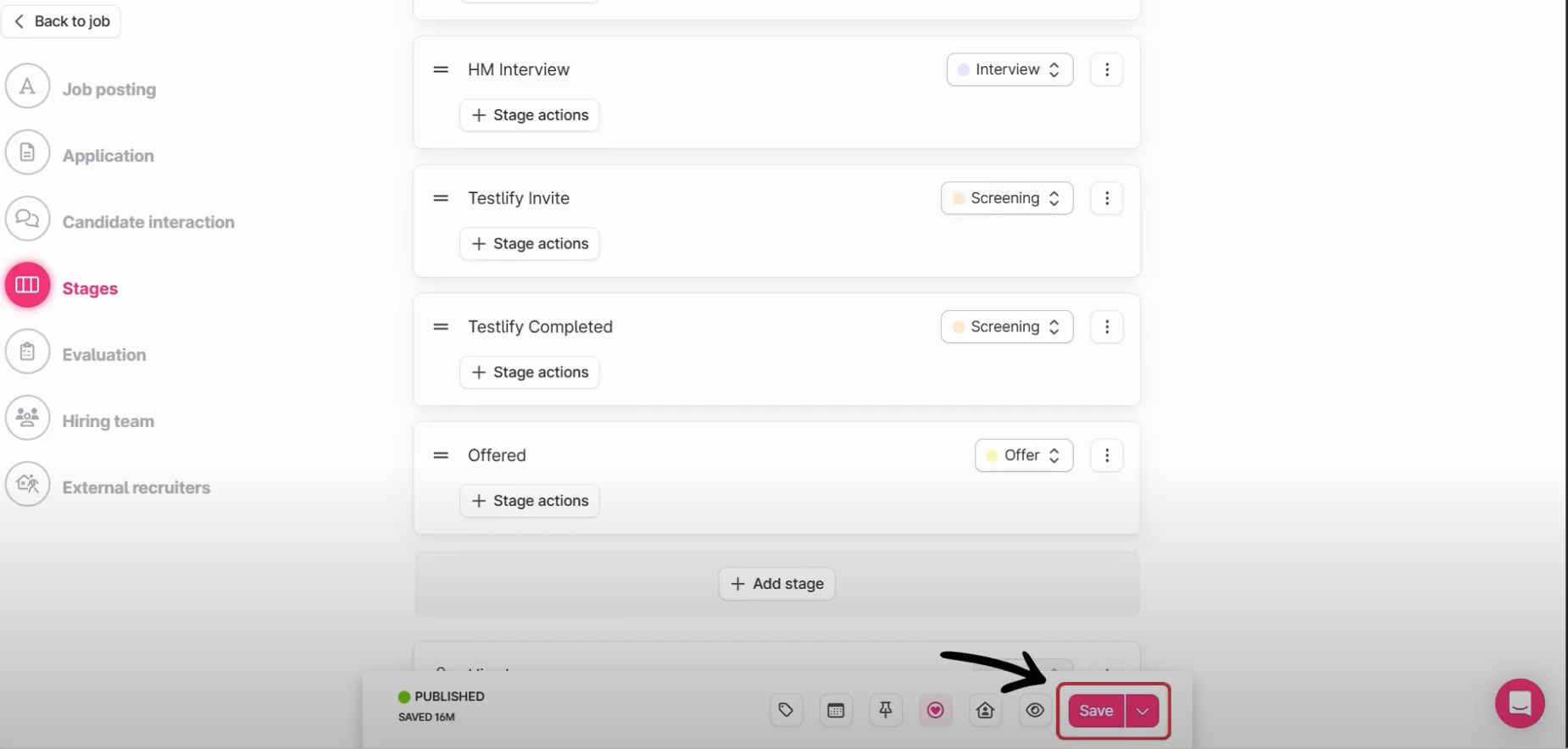 - (Optional) Edit your Job on Teamtailor to add new Stages for Invite and completion.