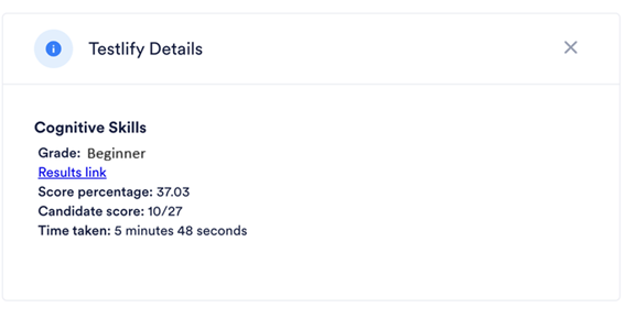 Once a candidate has completed the assessment, Testlify adds the following partner details to the candidates.