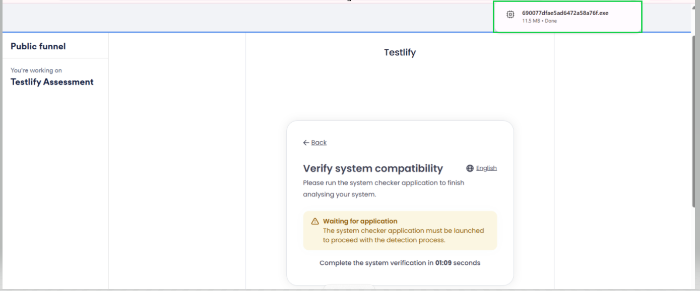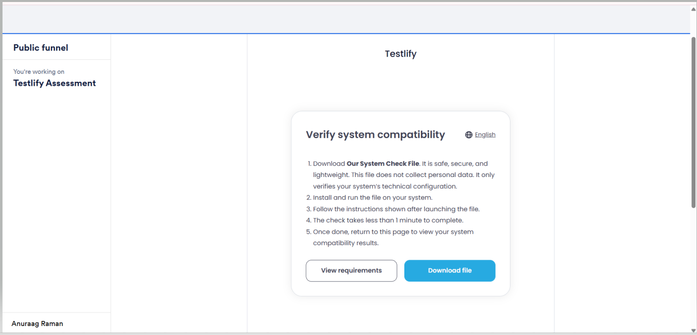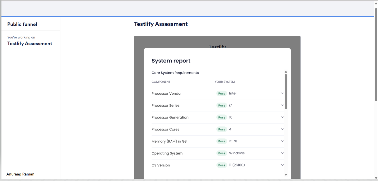 - Validate if the candidate’s system and browser are compatible with the Testlify platform.