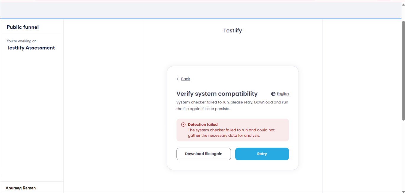 - If any issues are detected, candidates can click 'Retry' to re-run the system check.