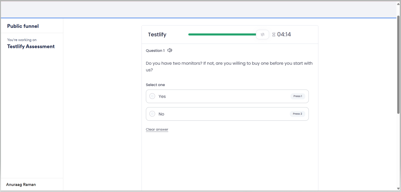 This feature helps confirm that the candidate’s camera, microphone, internet connection, and browser are working correctly, reducing disruptions and technical issues during the assessment.