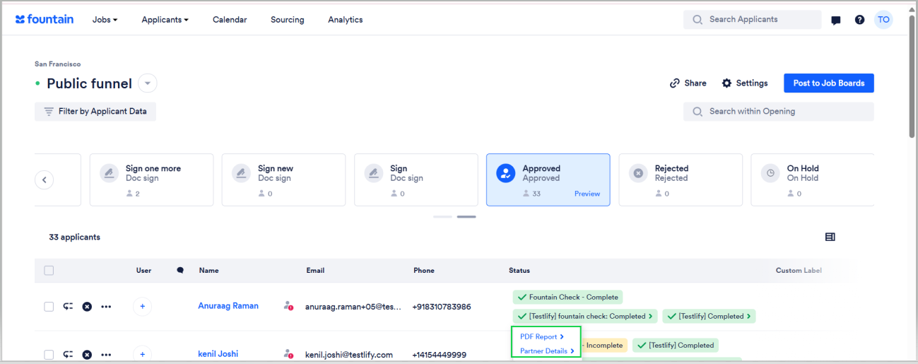 - Employers can view the candidate’s Testlify PDF report directly from Fountain.