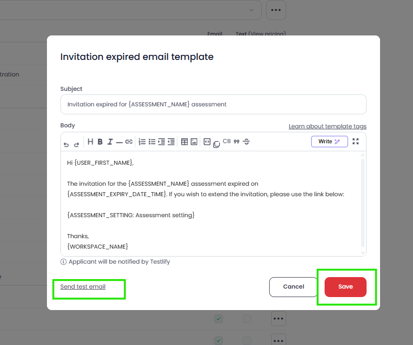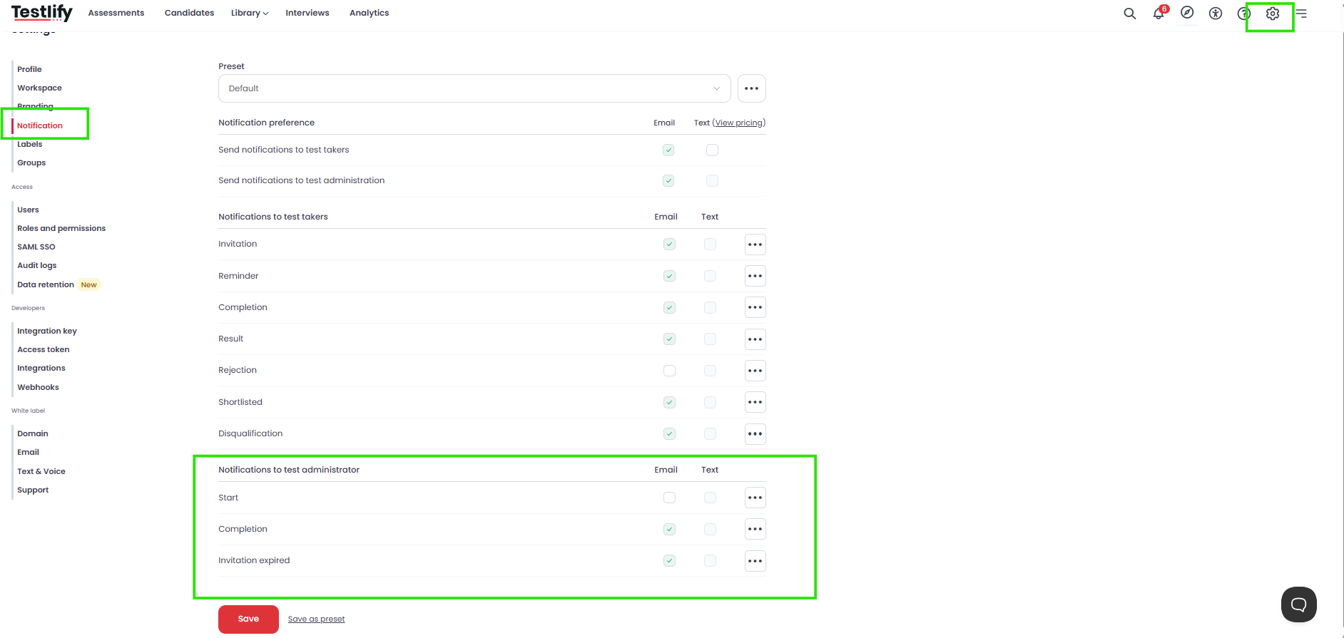 - SMS/Text notifications are chargeable, please refer Testlify Text Pricing.