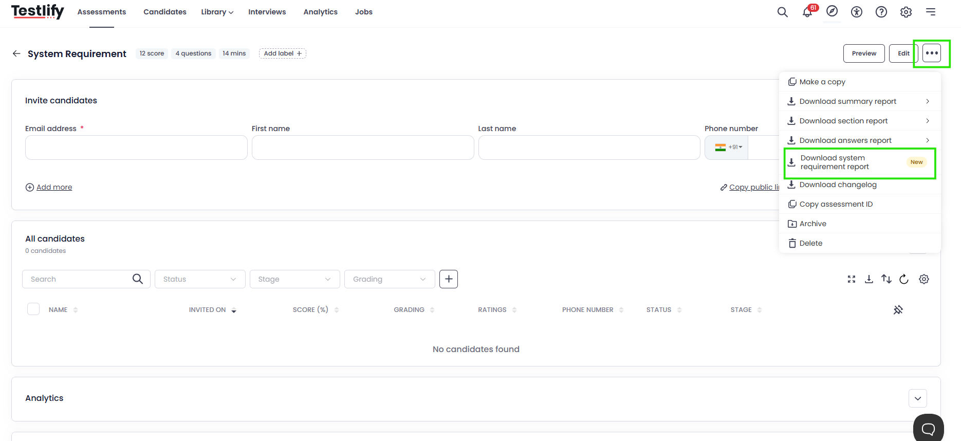 How to Download the System Requirement Report in Testlify
