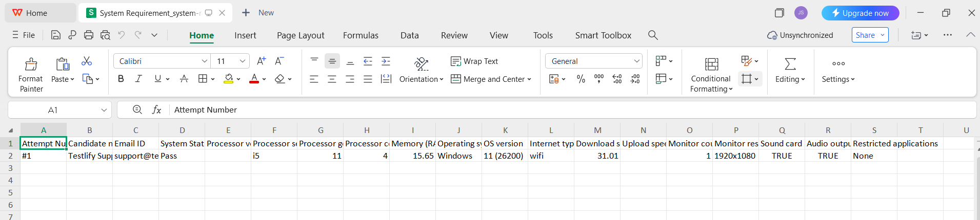 - The report will not be generated if the System Requirement Check was disabled during the candidate’s attempt.