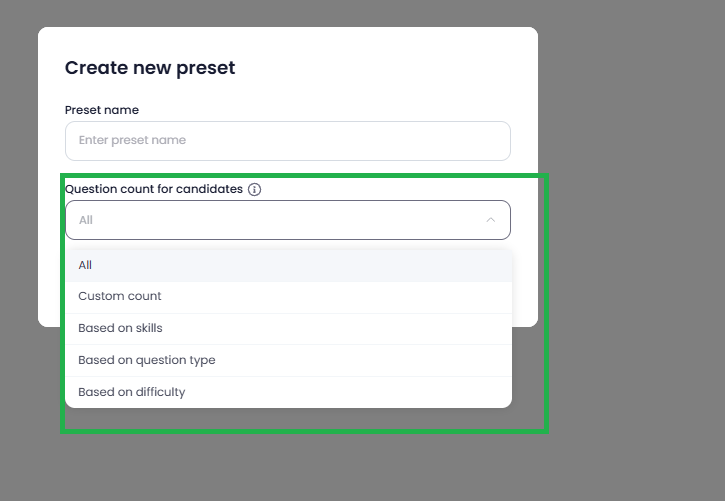 The selected preset will now determine which specific questions are assigned to candidates during the assessment.