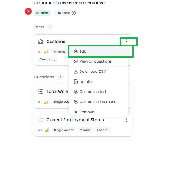 - Changes to presets apply only after saving the Company Test and Assessment.