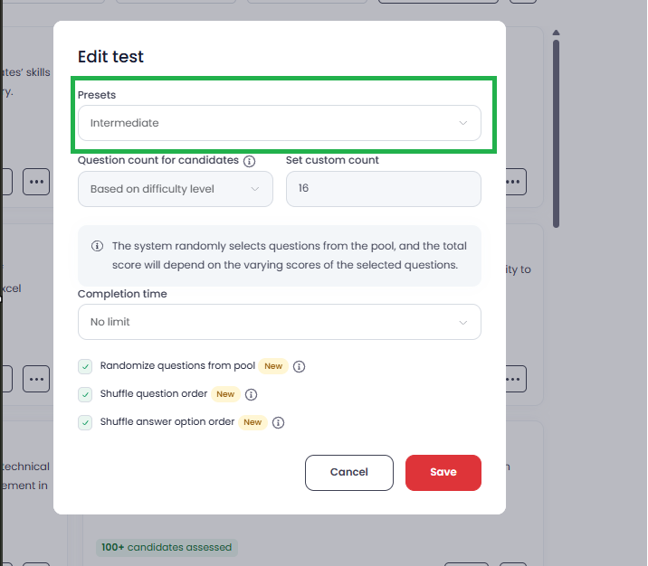 How to Use Presets to Control Question Selection in Company Tests and Assessments