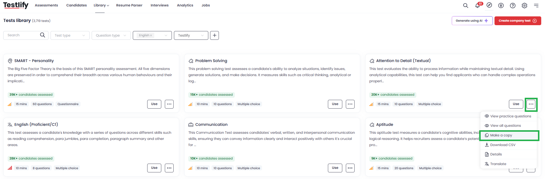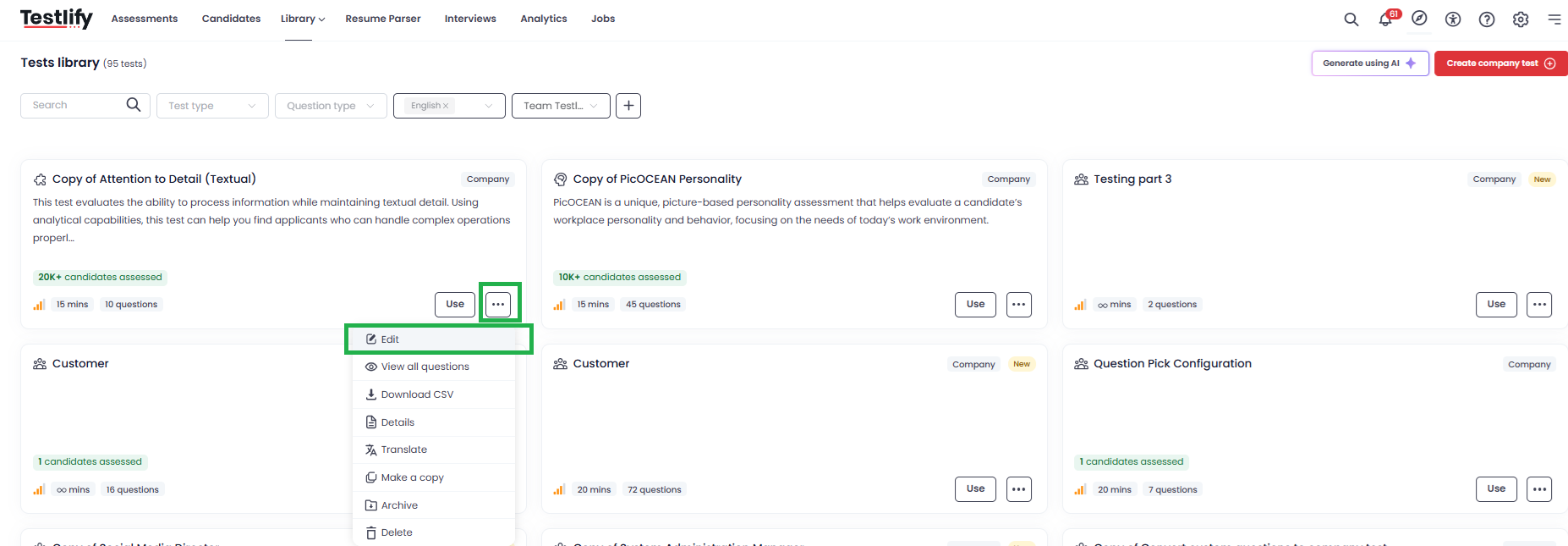 This article explains how you can edit an existing test from the Testlify Test Library and customize it as per your requirements.
