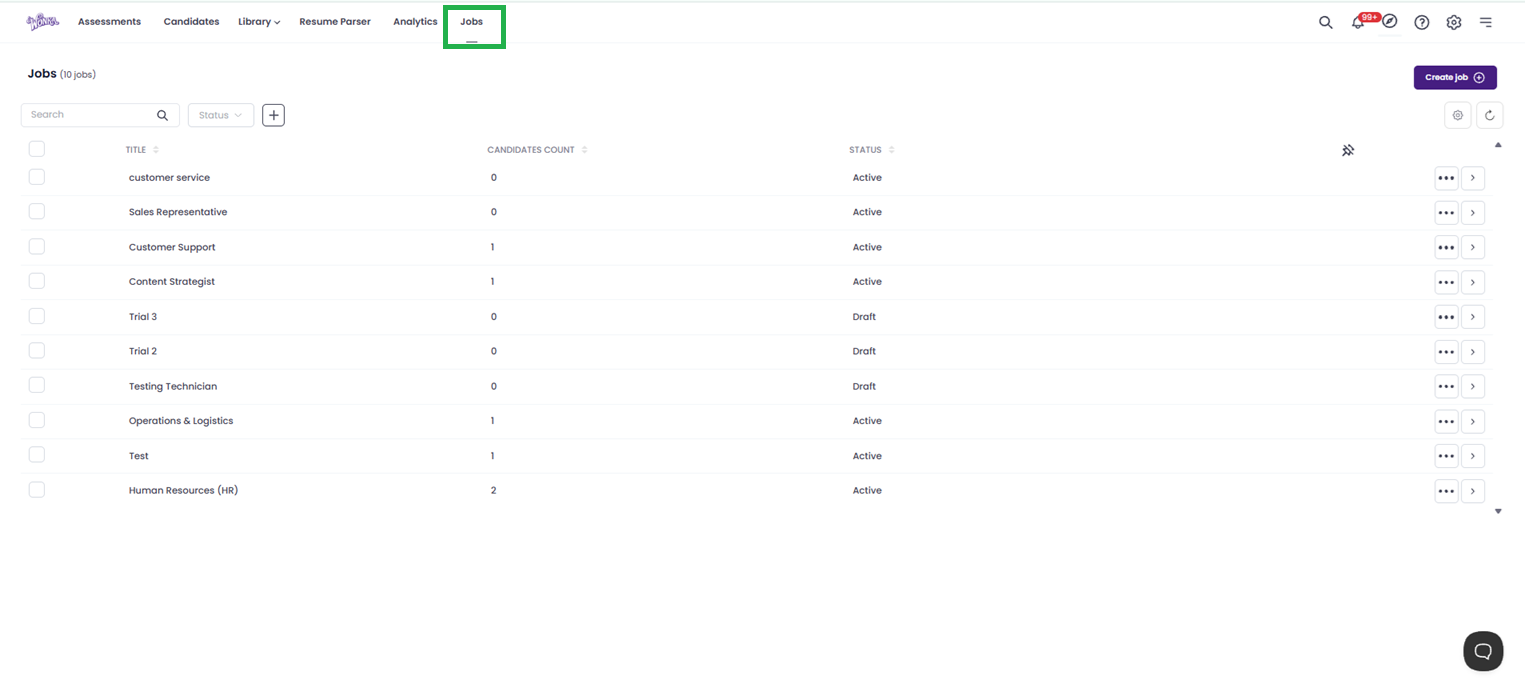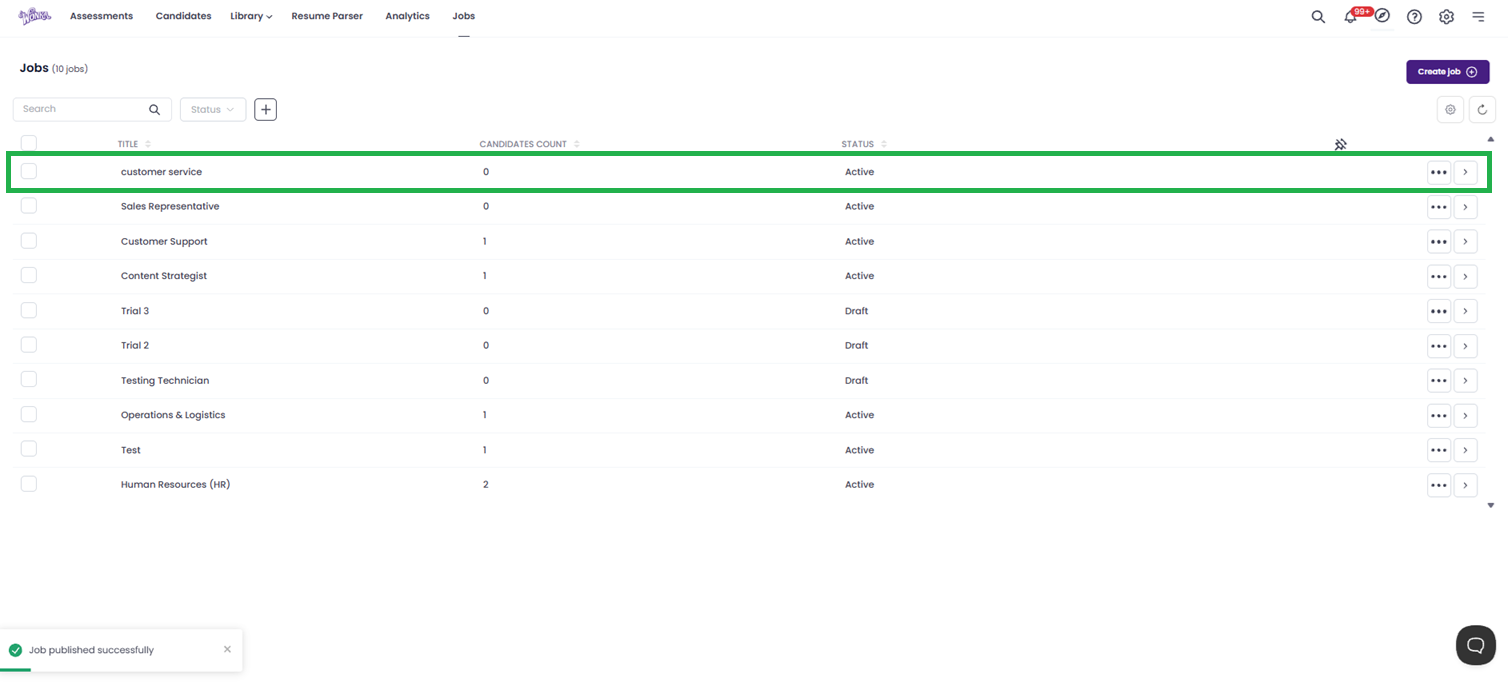 After publishing, you will be redirected to the job posting page. Here you can view the candidates who have applied.
