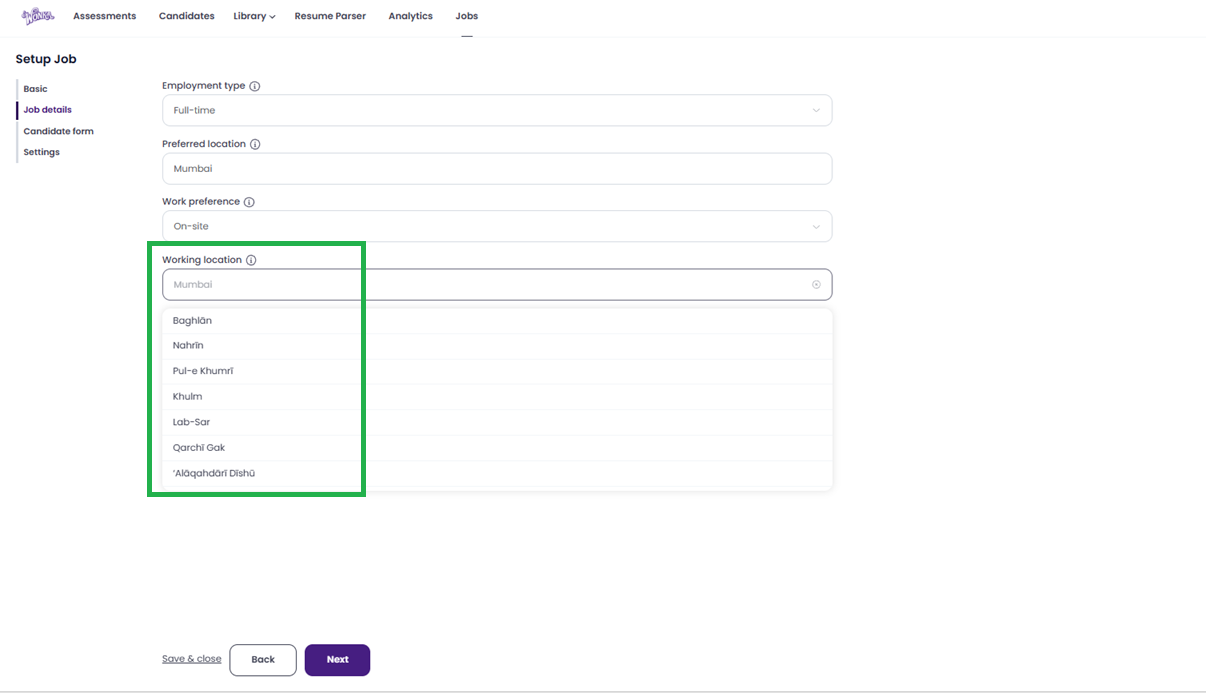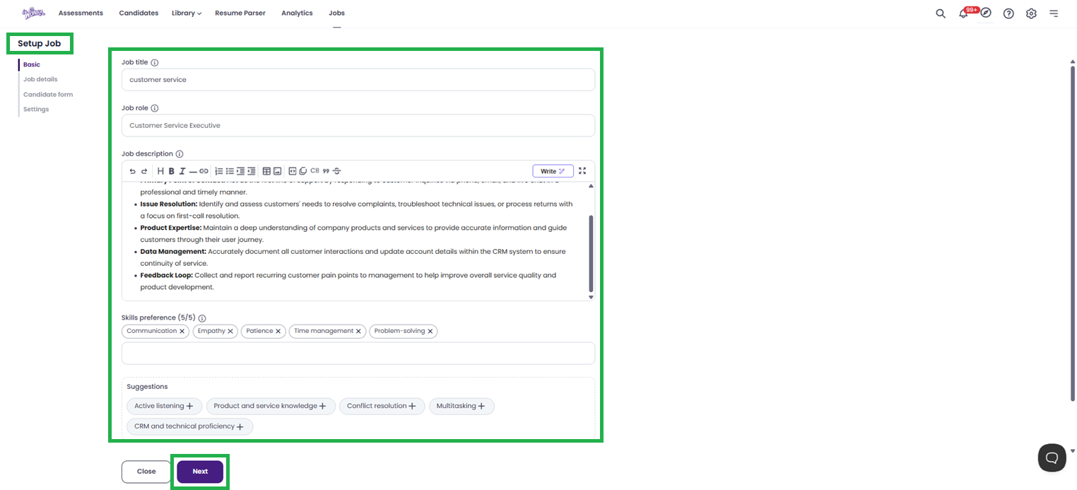 - Skills Preference (0/5): Add up to five key skills required for the role. This helps in matching candidates later.