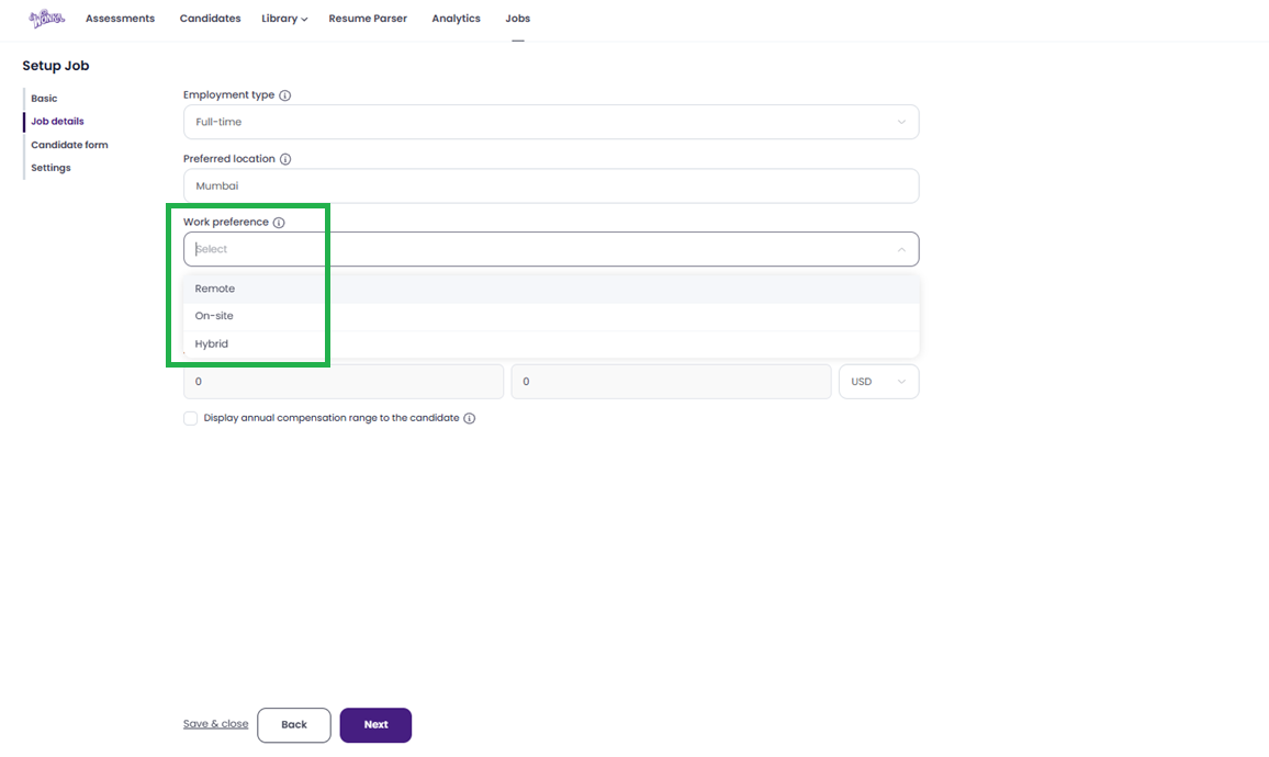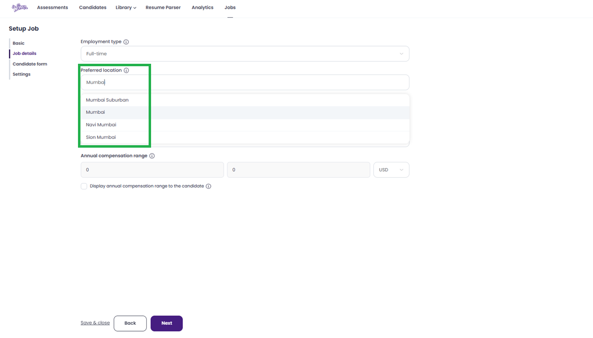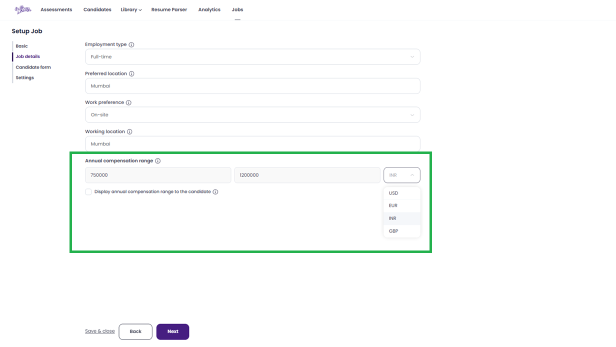 Tick the box if you want to Display annual compensation range to the candidate on the job post.