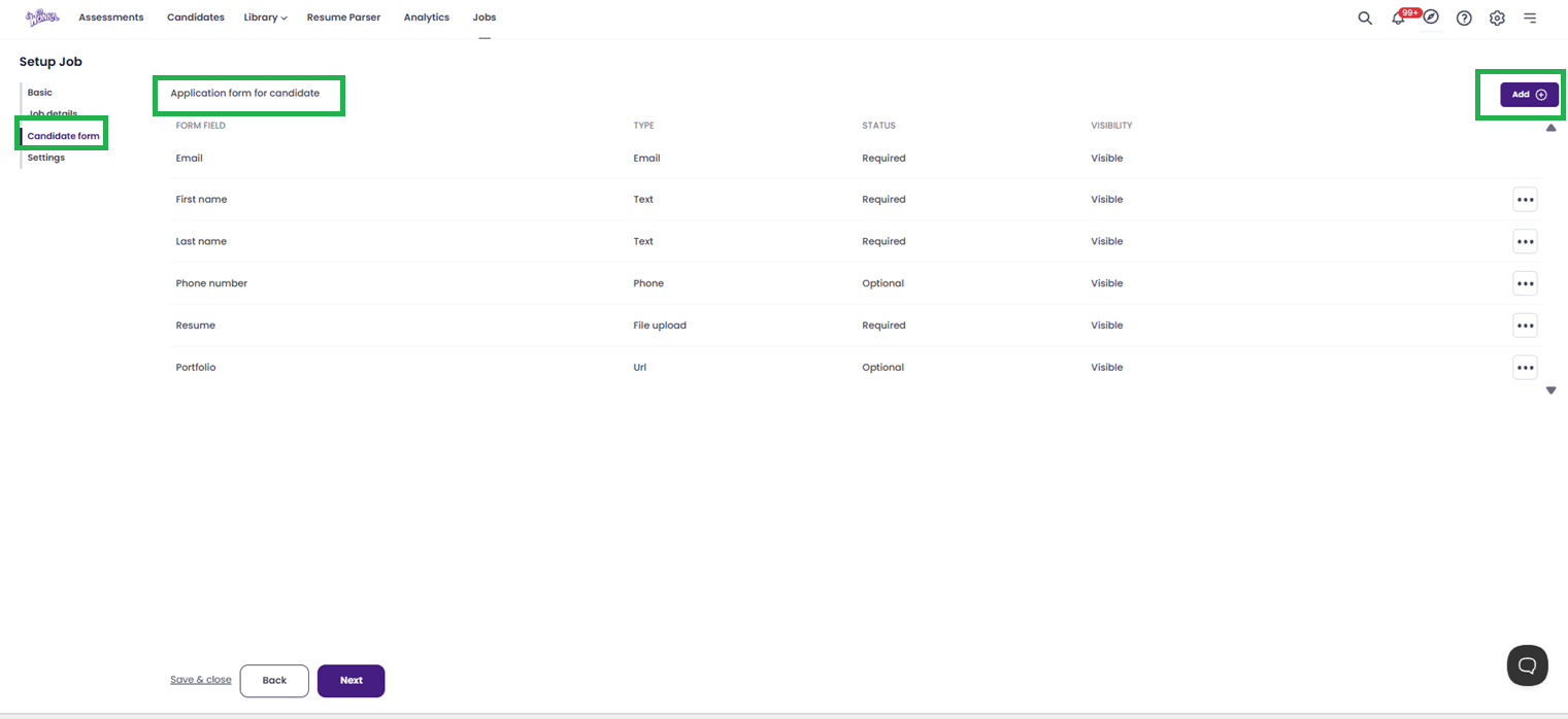 You will now land on the Candidate Form page. This is where you decide what information you collect from applicants.