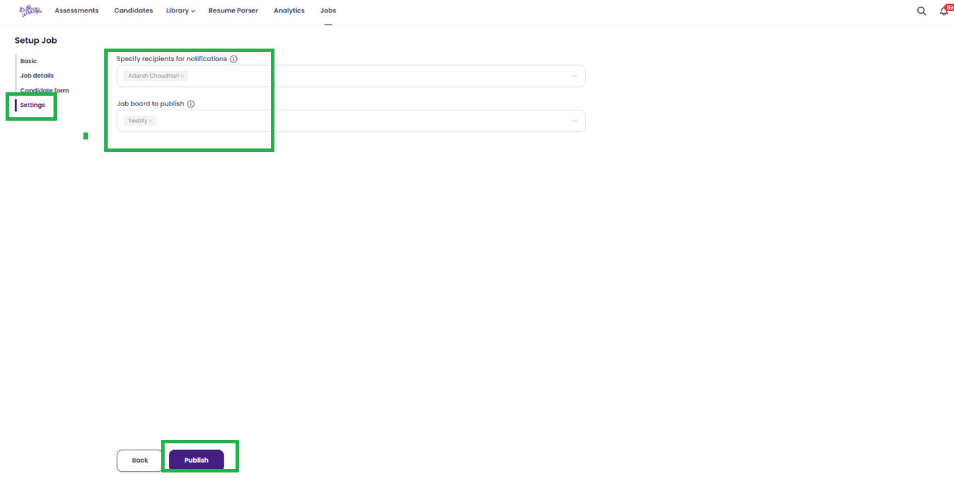 - Job board to publish: Select Testlify (Note: Integration with external job boards may be available in the future).