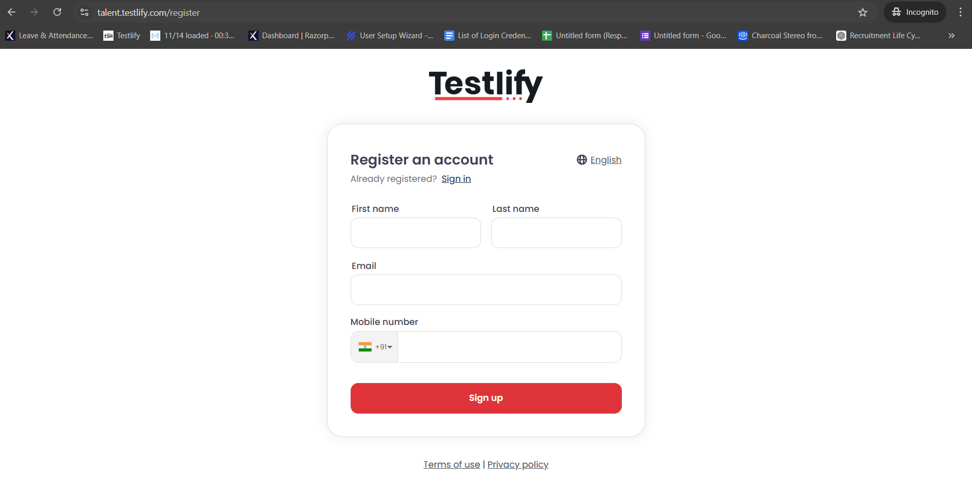 - Visit the candidate sign-in page: https://talent.testlify.com/