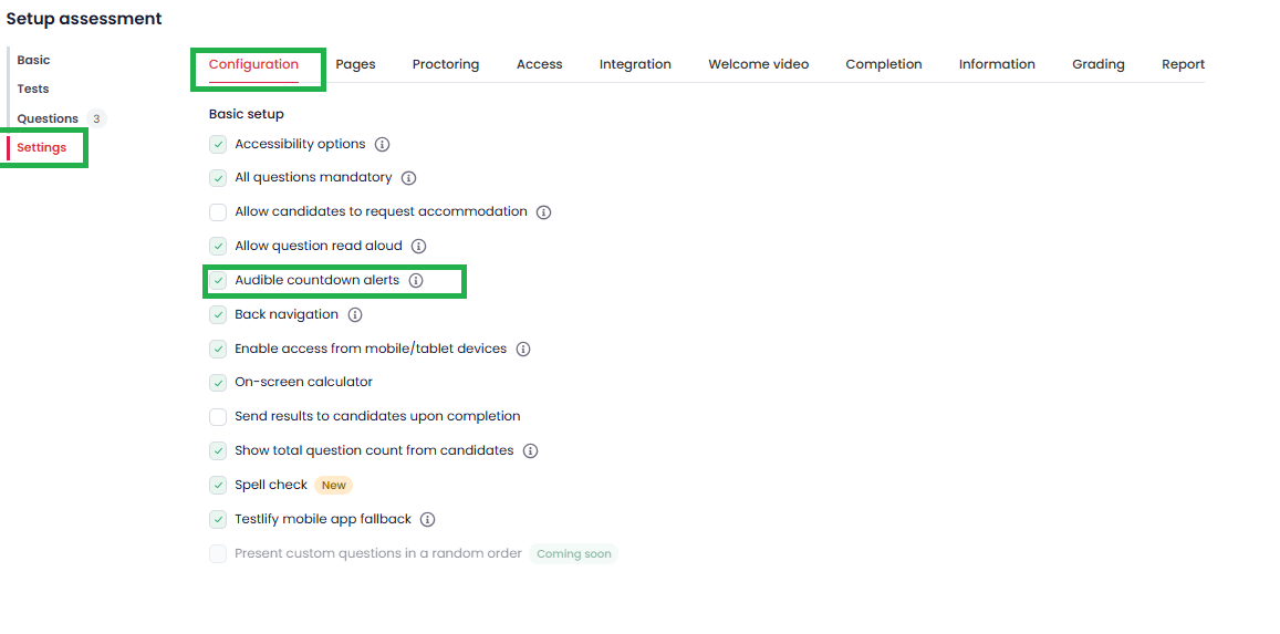 - Location: Assessment settings → Configuration Tab