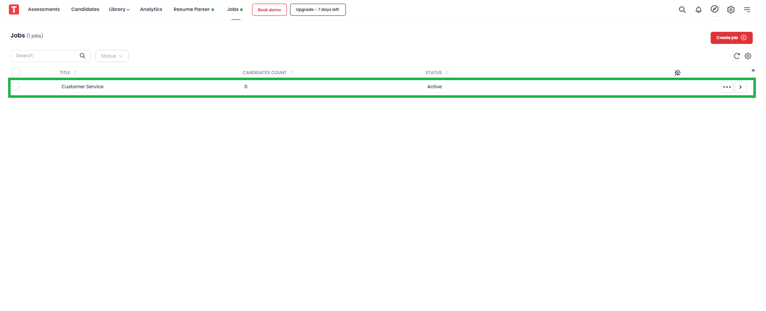 Once published, your job will appear under the Jobs tab. You can see its status, posting date, and number of applicants.