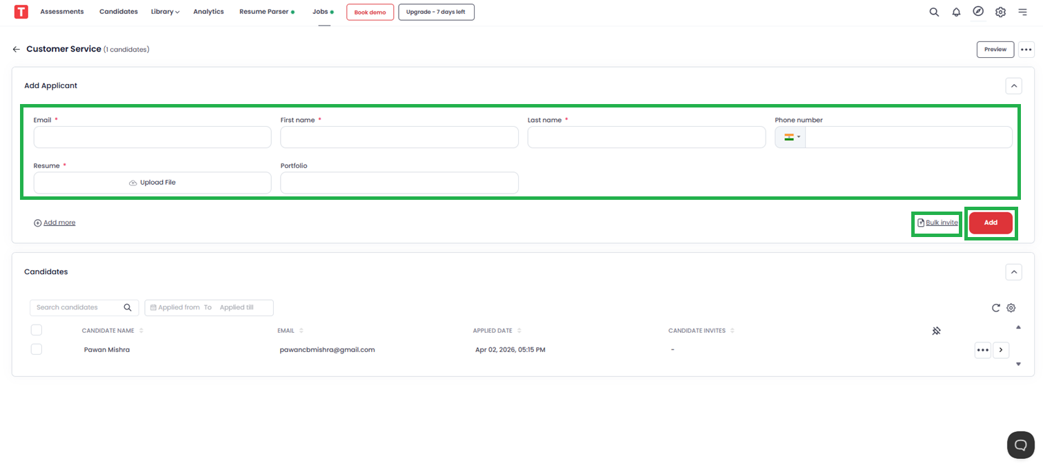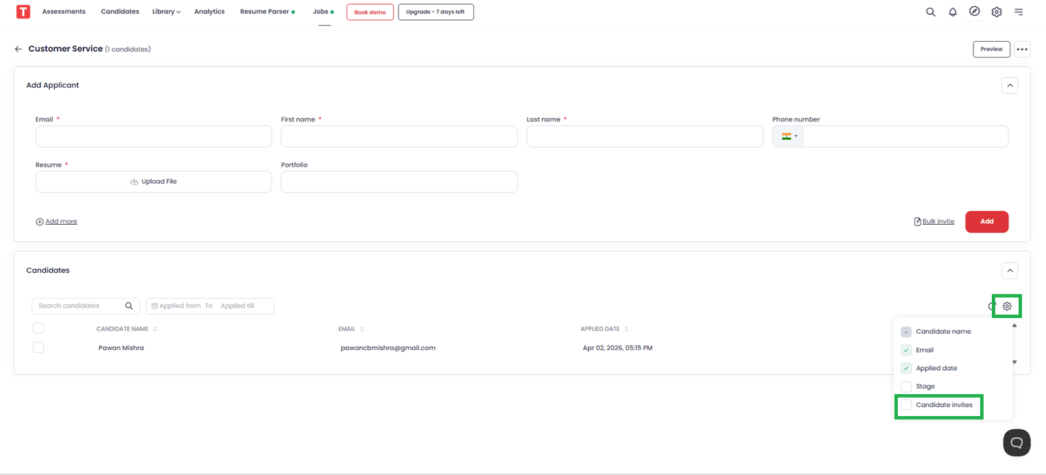 - Under the Invite section, enter candidate details (name, email, etc.).