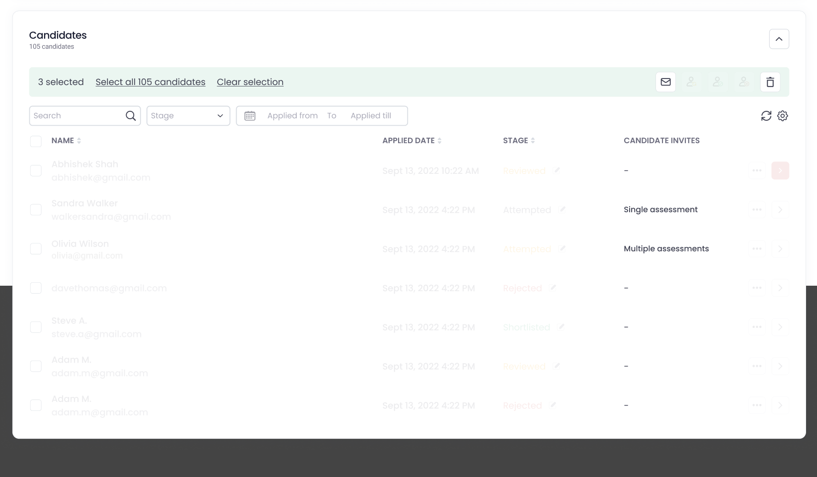 From the same menu, you can also invite the candidate to another assessment if needed.